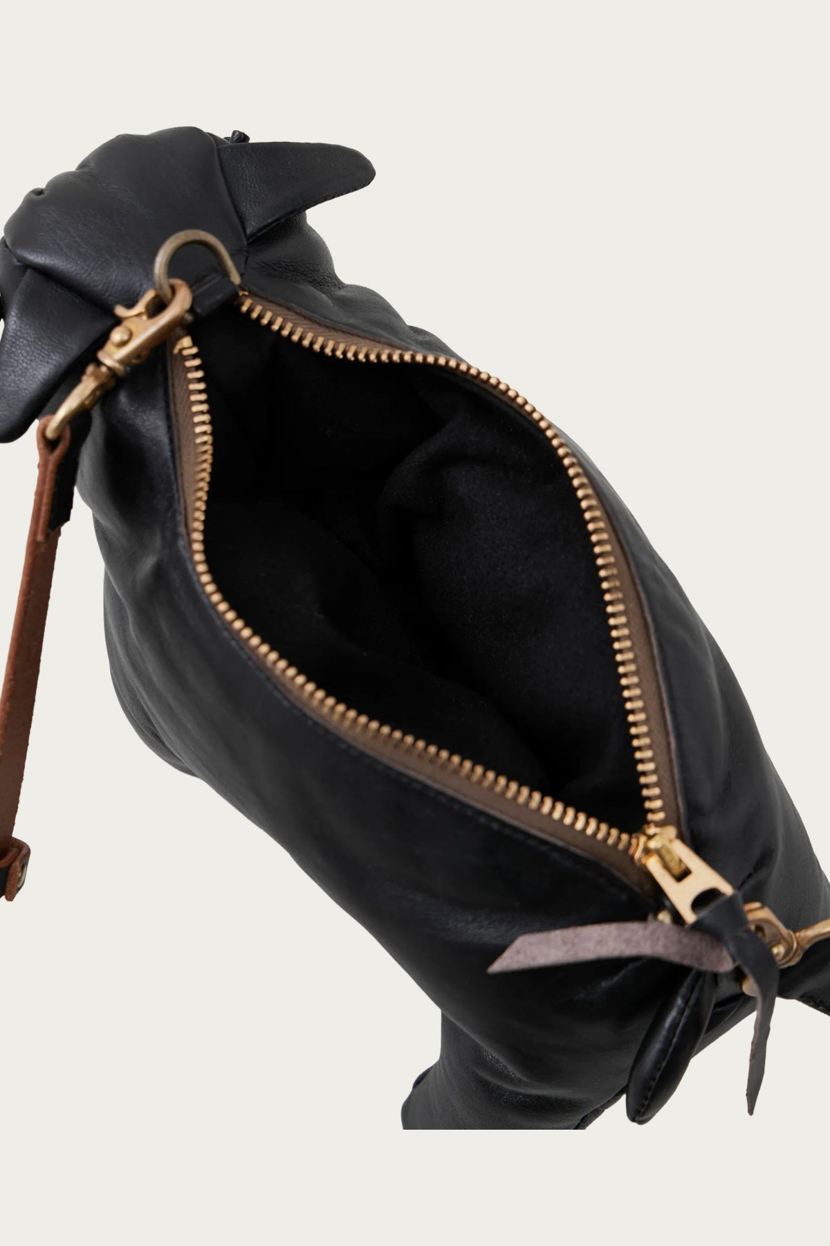 A sculptural little companion with a story, the B.Chesty Animal Bag is formed from brown-core lamb leather imported from the UK, bringing soft depth and a vintage-inspired richness. Its shape blends two distinct inspirations: midcentury British footstools and a WWII-era US Marine bulldog mascot, creating an unexpected and charming silhouette. Compact but purposeful, it fits essentials like your wallet or smartphone, while an oiled cow-leather strap adds functional contrast in texture.