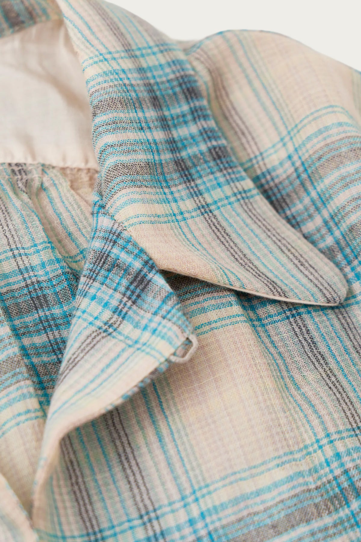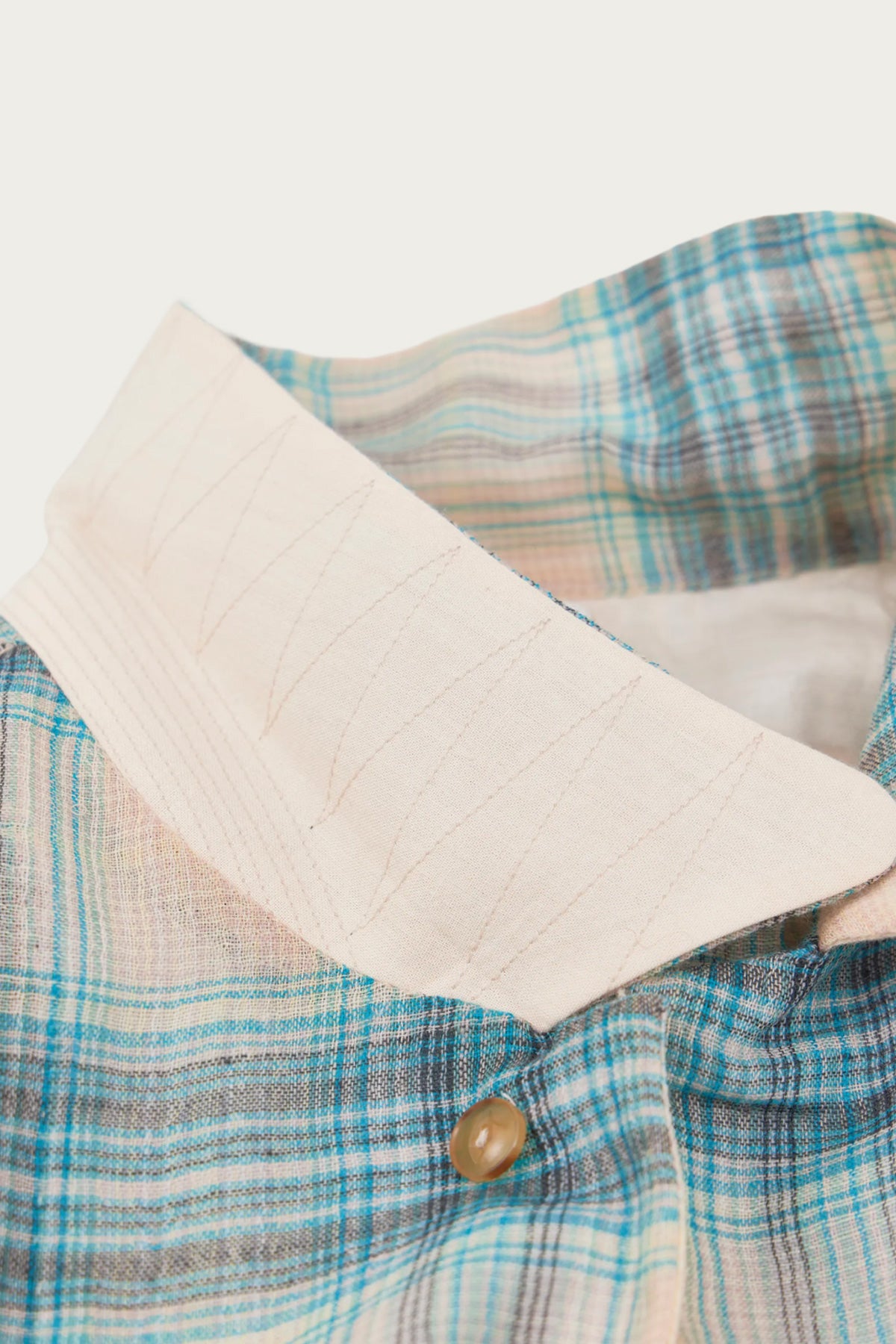 A shirt-jacket that carries the poise of tailoring with a painterly soul. It’s woven from ultrafine wool threads in 13 colors, crafting an ombré check that feels muted yet deeply layered. Cut between a jacket and shirt, it’s versatile enough to wear with ease in both smart and lived-in contexts. Hand-sewn chain stitch gathers add subtle texture and dimension.