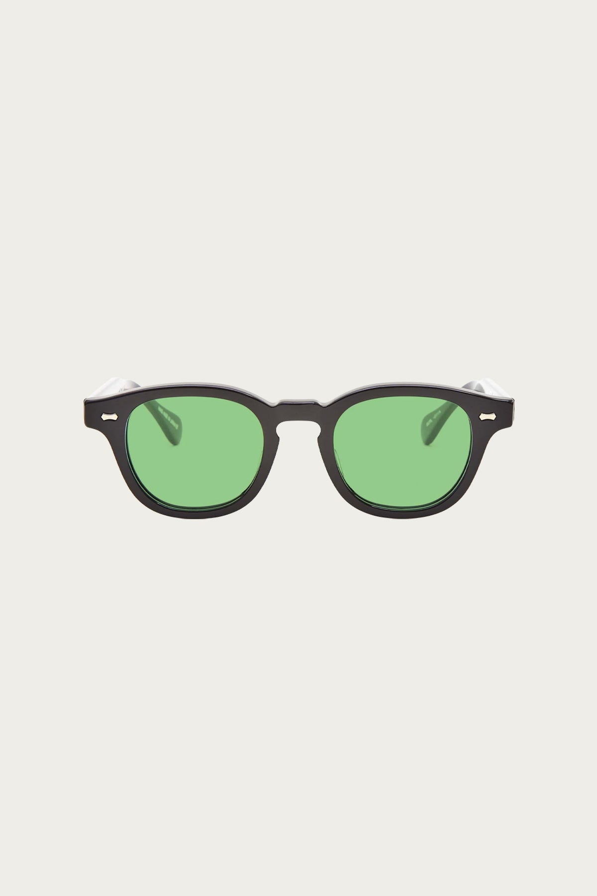 The ARNIE is a classic keyhole wellington hybrid shape with signature bowtie beauty marks. Handmade in Japan using Takiron Cellulose acetate and Titanium plated components and Shima Optics Sun lenses.