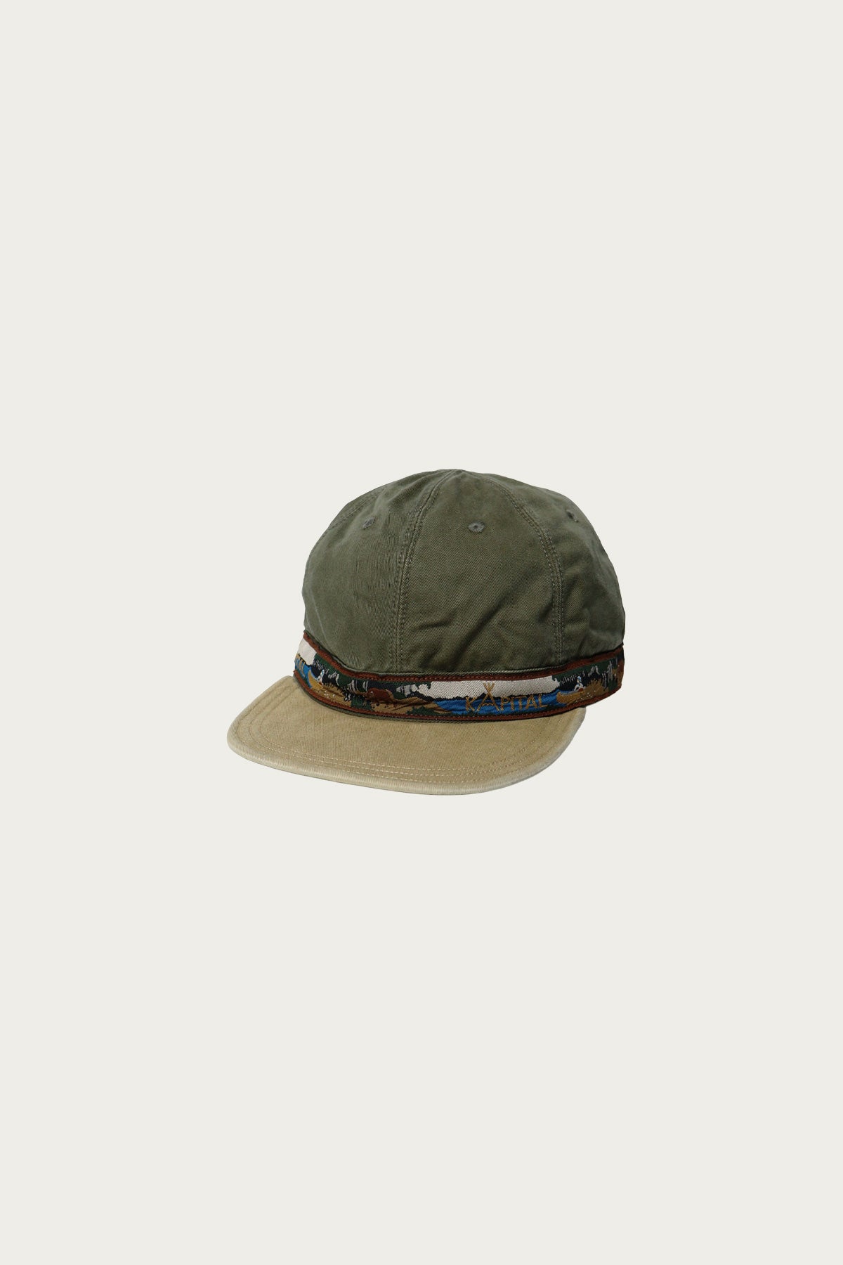 A classic six panel cap elevated through Kapital’s lens with embroidered detailing and a soft, broken in feel. The chino fabric keeps it lightweight and wearable year round, while the subtle graphic band adds just enough personality. Easy to wear with everything from technical outerwear to knitwear and denim. One of those finishing touches that quietly pulls an outfit together. Khaki/Beige Colorway.