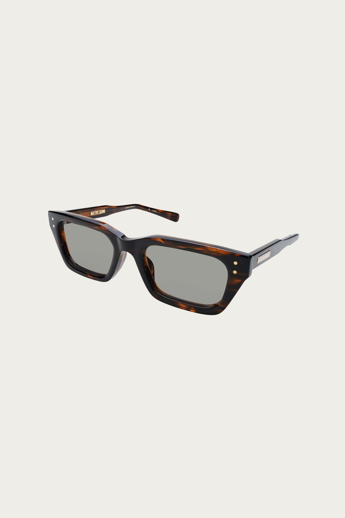 A strong but elegant look to the front with a hard edge. As all in the engineering collection, the core wire is Diamond tooled. The motor head beauty marke screws through the temple and core wire. A 5 barrel scooped arrow hinge with a star-nut on the bottom for tuning and stiffness.