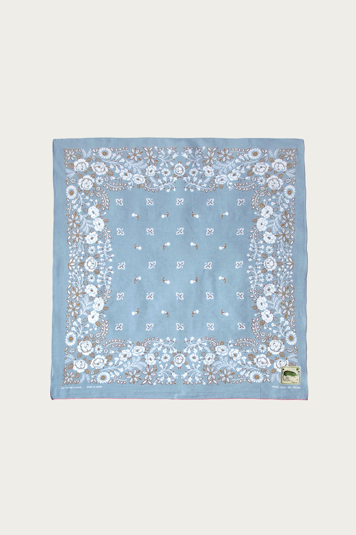 A small square of cloth with a lot of soul. This bandana is woven on selvedge cotton, printed using fastcolor techniques that honor classic bandana tradition, and finished with that slightly washed-in hand that makes it feel like a vintage find from day one. The floral “Churchill Garden” motif spreads across the fabric in a dense, cheerful pattern that still carries an undercurrent of heritage workwear. Compact yet characterful, it’s a small piece with big personality.