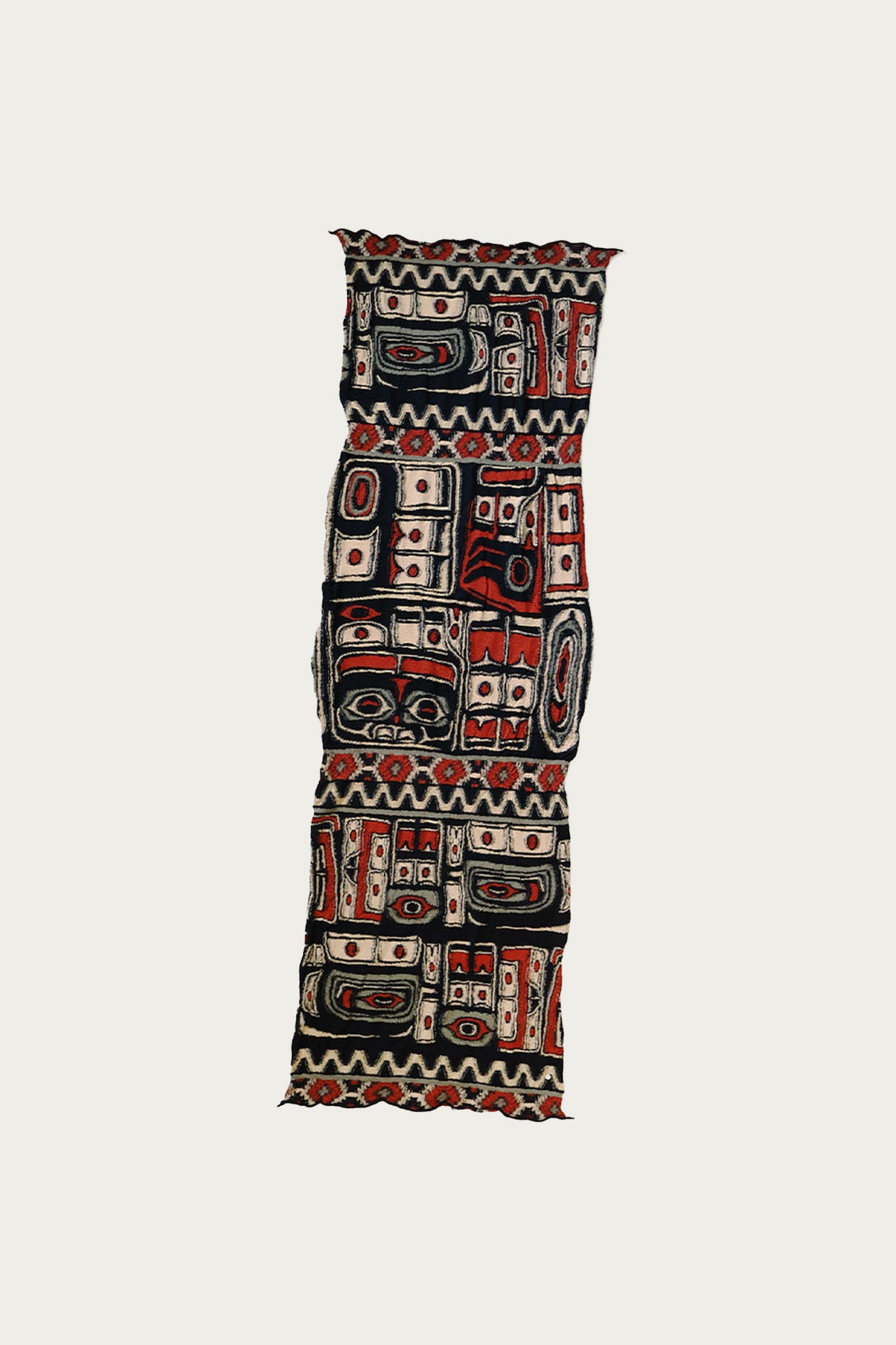 Thick, fulling wool gives this scarf a dense, almost felted texture that traps warmth while showcasing Kapital’s bold graphic language. The orange Alaska Raven motif feels folkloric and expressive, adding a hit of color and pattern to winter layers. Wrap it over dark outerwear or neutral knits to let the design stand out, or clash it confidently with other prints for a very Kapital approach.