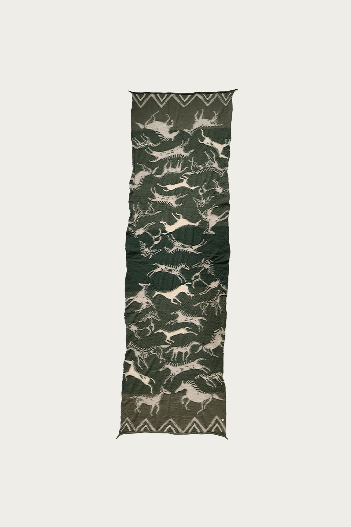 Fulling Wool Scarf INDIAN PAINTING - Green