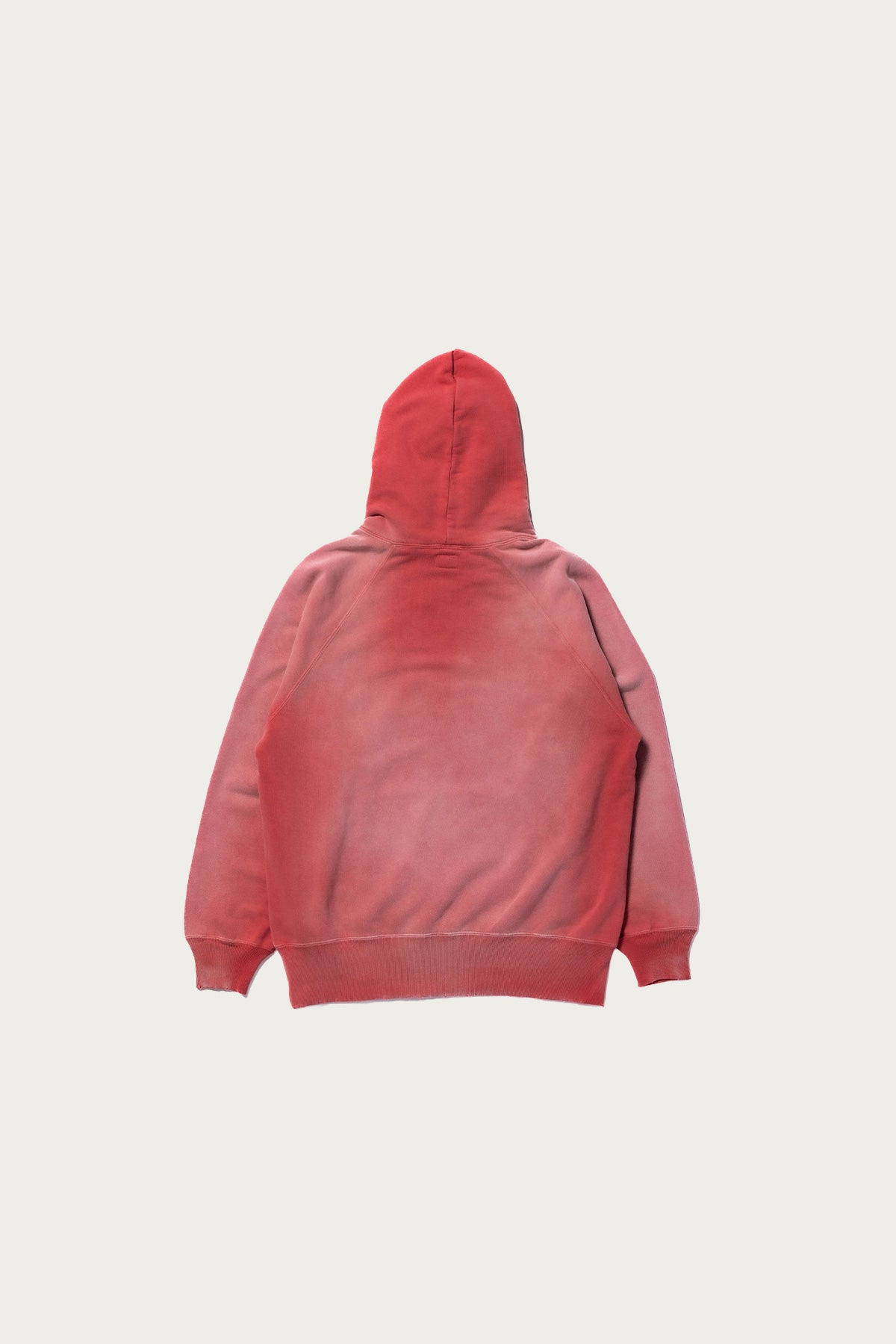 Constructed from a 9oz. weight fabric with horizontal construction instead of vertical, a common technique seen on 1950s sweatshirts, this Heavyweight Hooded Sweatshirt boasts seamless shoulders and side gussets to prevent width adjustment after washing, a common practice during 50s sweatshirt production.