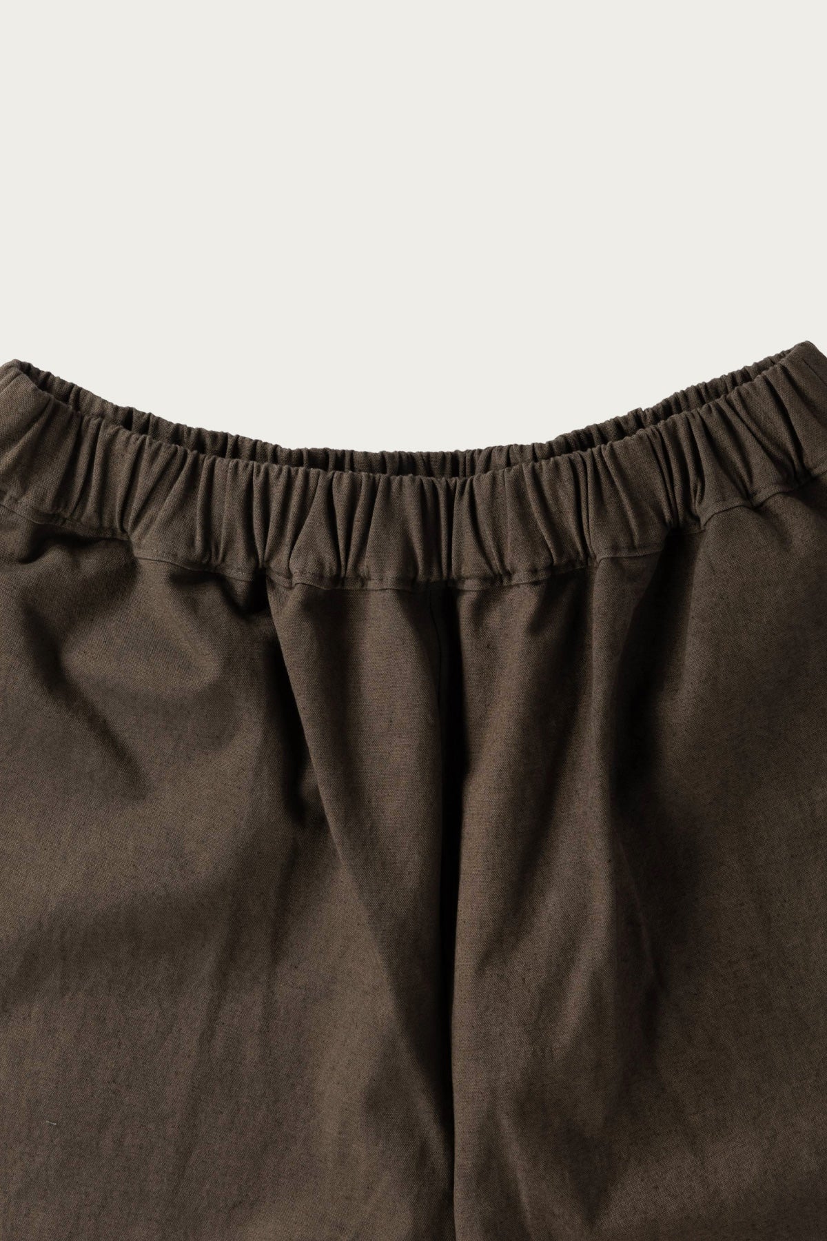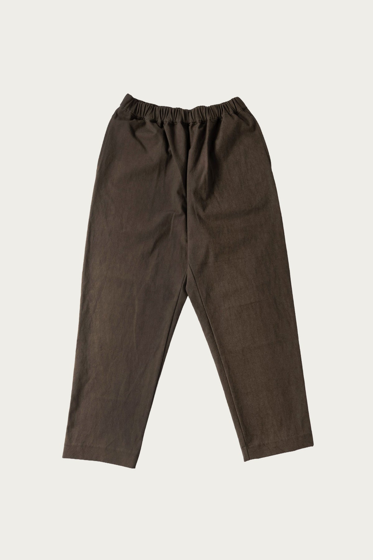 The Café Pant from William Frederick is built for easy wear with thoughtful texture and shape. Cut from a vintage-washed cotton-linen canvas in a rich army green, the fabric feels soft but structured, with the kind of hand you only get from natural fibers. The elastic waistband keeps things relaxed and comfortable, while hidden side seam pockets at the front and two large patch pockets at the back add subtle utility. The slightly cropped length gives it a clean, modern line that works with boots or sneakers. It’s an everyday pant made for real use. Comfortable, considered, and quietly detailed.