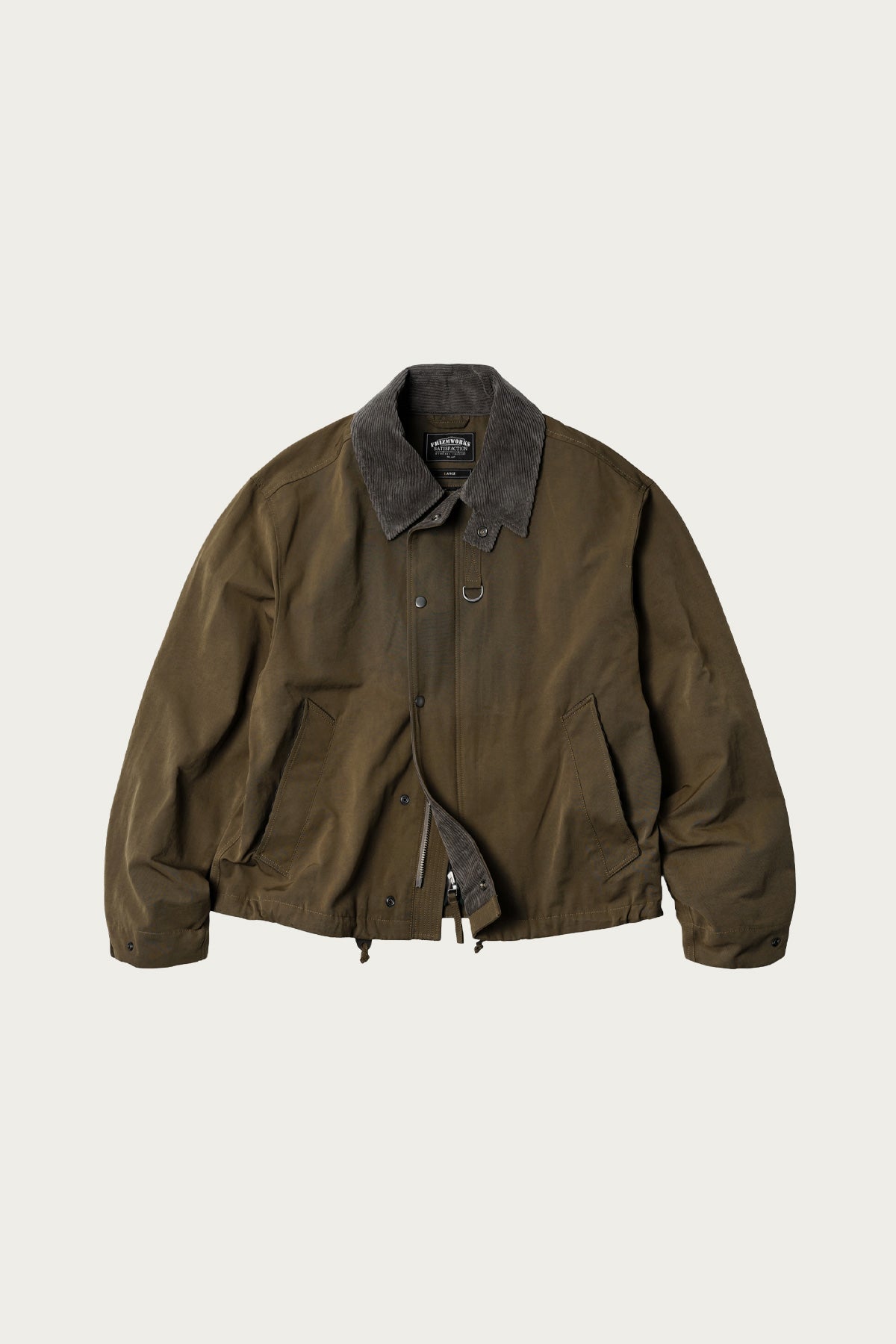 This hunting jacket features a classic fabric arrangement and modern silhouette. It is crafted with raw and auxiliary materials and tailored with careful attention to details and silhouette. It has a strong, wide body and truncated length, along with a smart, accessible pocket on the front. Durable CPN pitch processing fabric adorns the exterior, while the collar and inner hem are crafted with corduroy fabric and lined with lightweight flannel check fabric. This provides the essential heft and tactile qualities for a rugged yet refined product that elevates any outfit.