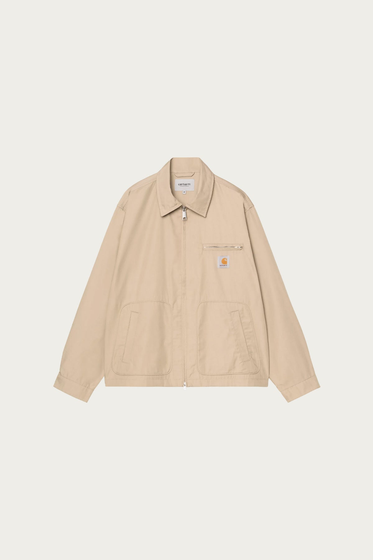 The Postal Jacket is made from an unlined, midweight polycotton fabric. The item features a two-way zip and a zipped chest pocket. Two welt pockets appear on the front. A woven Square Label completes the design.