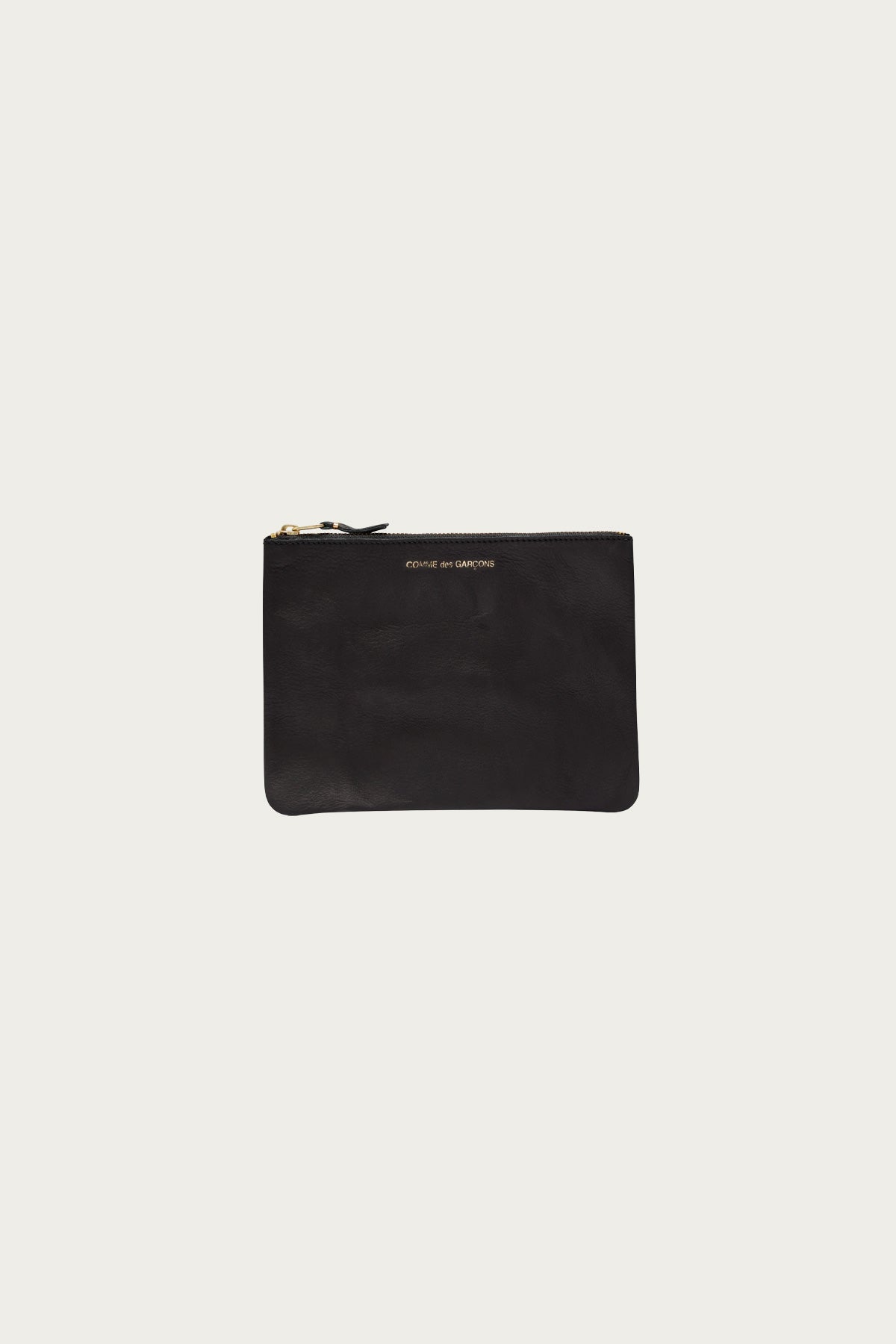 Soft, washed cowhide leather gives this slim zip pouch a relaxed feel with a lived in texture. Simple, functional, and perfect for daily carry. The gold foil logo and hardware add a clean contrast to the matte finish. Sized for cards, cash, and small essentials without bulk.