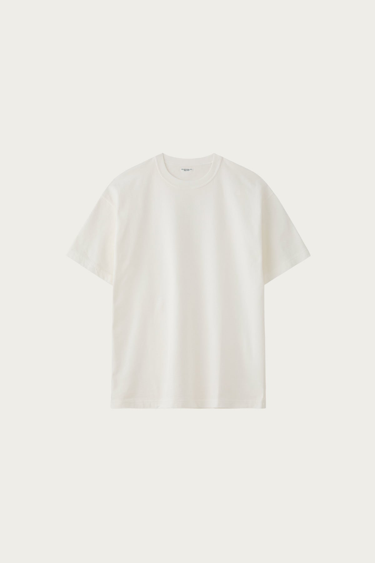 A clean, everyday tee with a slightly fuller, relaxed shape. Cut from a smooth cotton jersey that feels soft against the skin while holding its structure over time. Finished with a classic ribbed collar and minimal detailing.