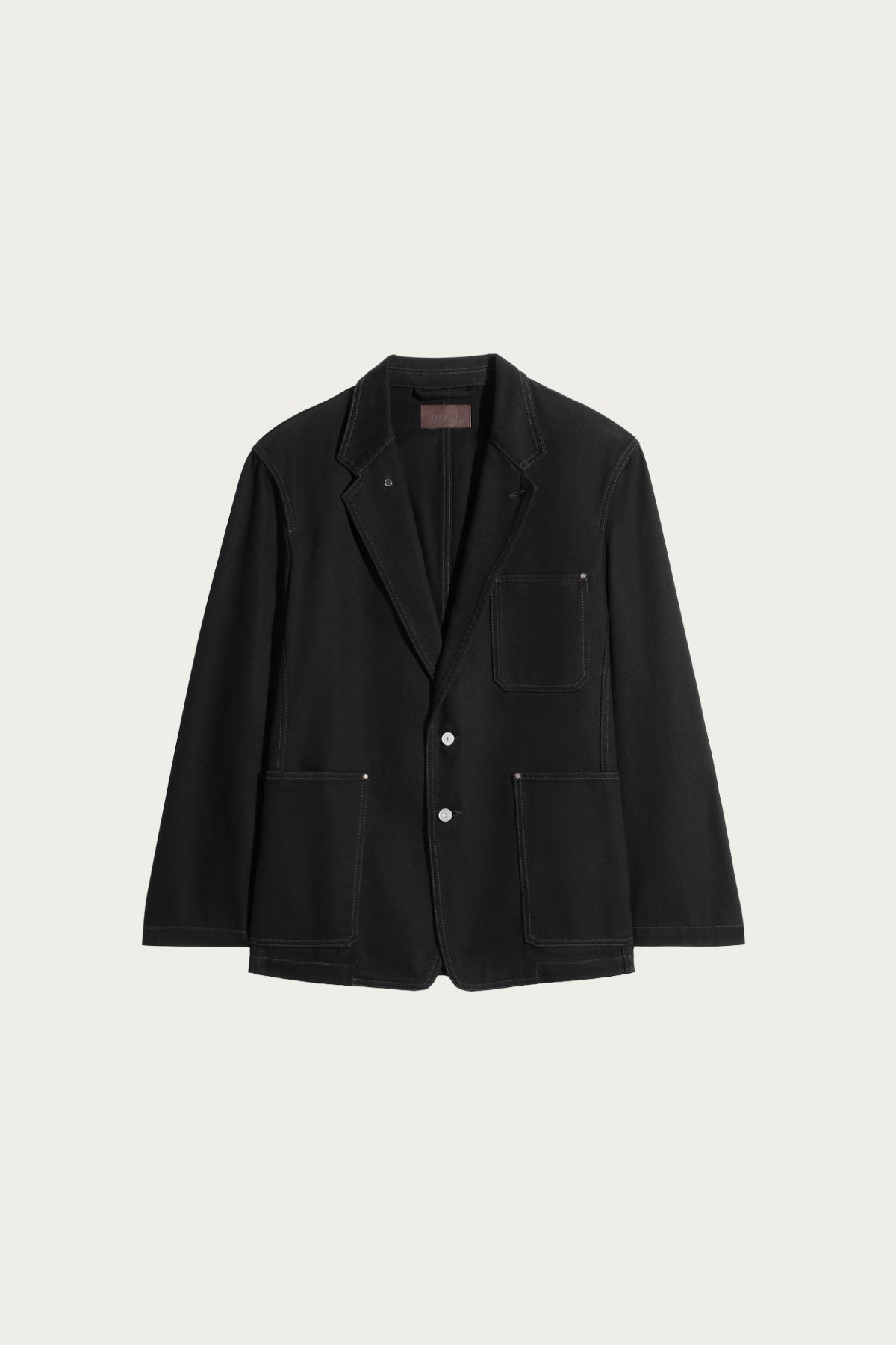This tailored jacket is crafted from broken twill. The fabric gives the piece a flawless drape.