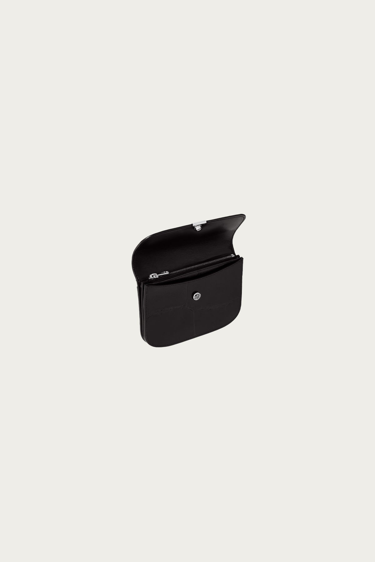 A refined everyday card holder crafted from supple leather with a softly structured feel. The tab closure keeps things secure while maintaining Lemaire’s understated, sculptural approach. Slim enough for a front pocket, but substantial in hand thanks to the rich leather and subtle paneling.