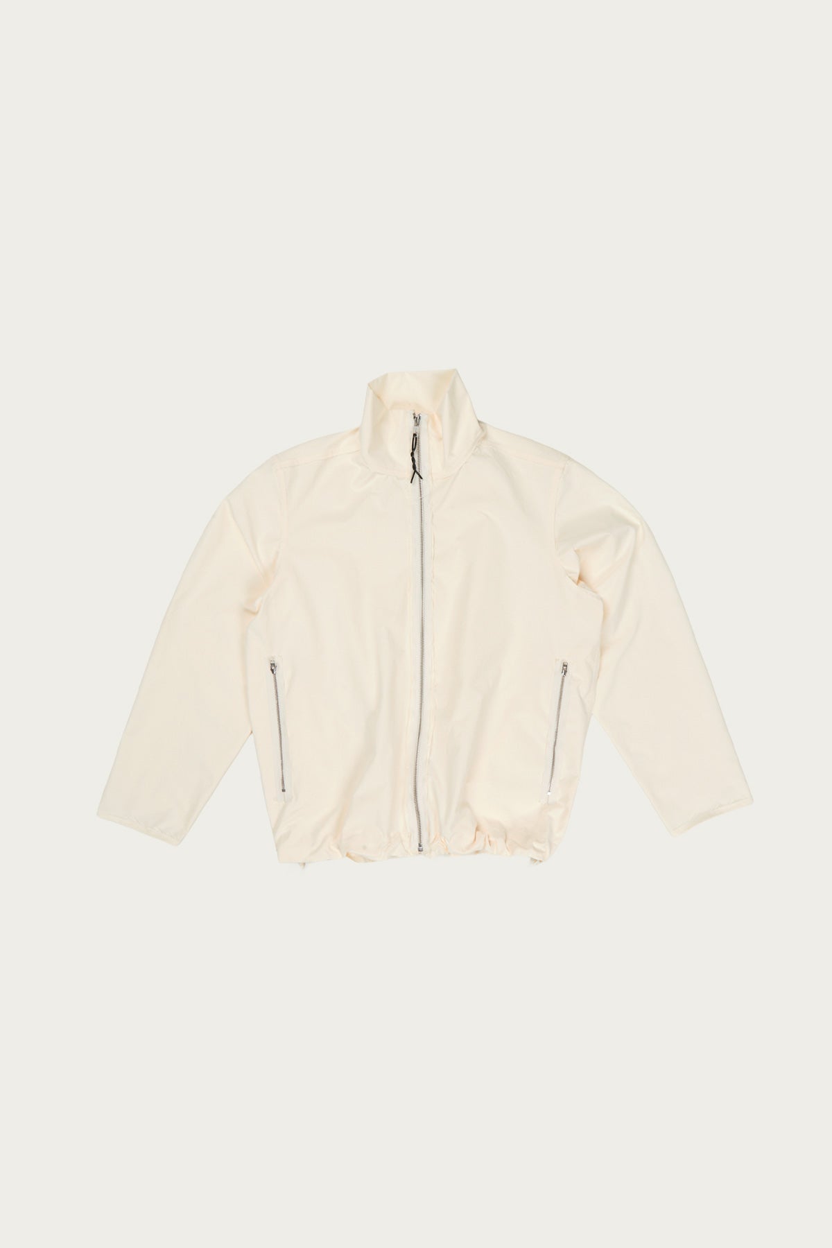 A lightweight outer layer with a technical feel and a restrained palette. The cropped body and zip front keep it sharp, while elasticated details add a touch of sport. Minimal, but considered in proportion.