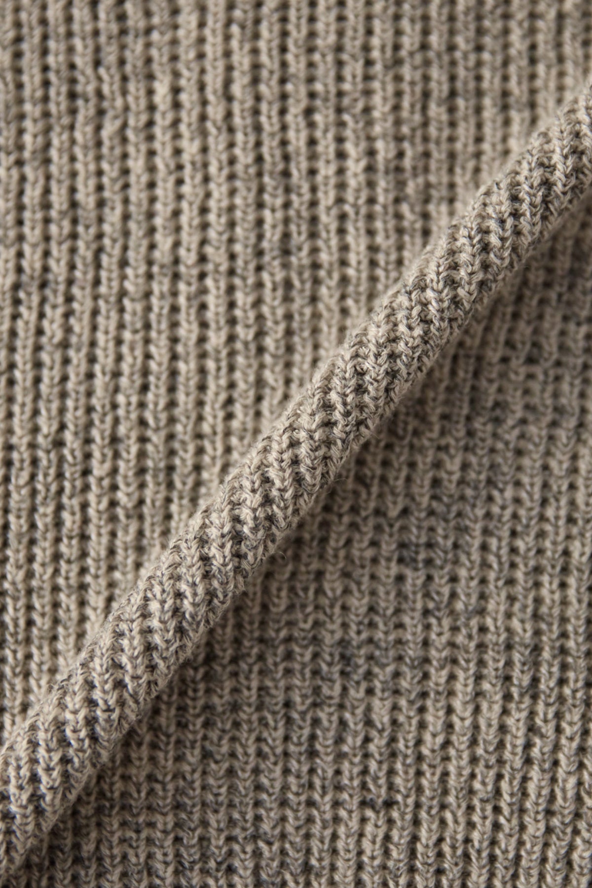 This is a driver's knit with a modified tuck pattern. Linen and hemp are stiff fibers that are extremely difficult to knit, but this requires creating a three-dimensional, uneven shape, making it extremely difficult to knit. The generous use of yarn adds thickness and density, allowing you to experience the luxurious texture and volume of linen.