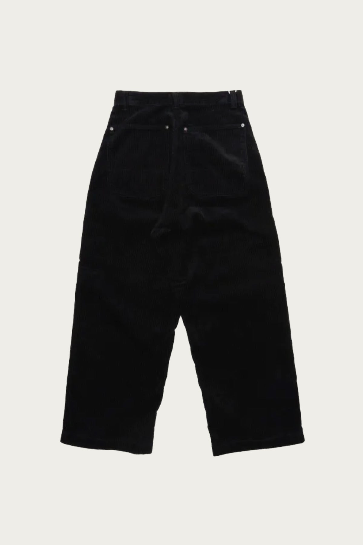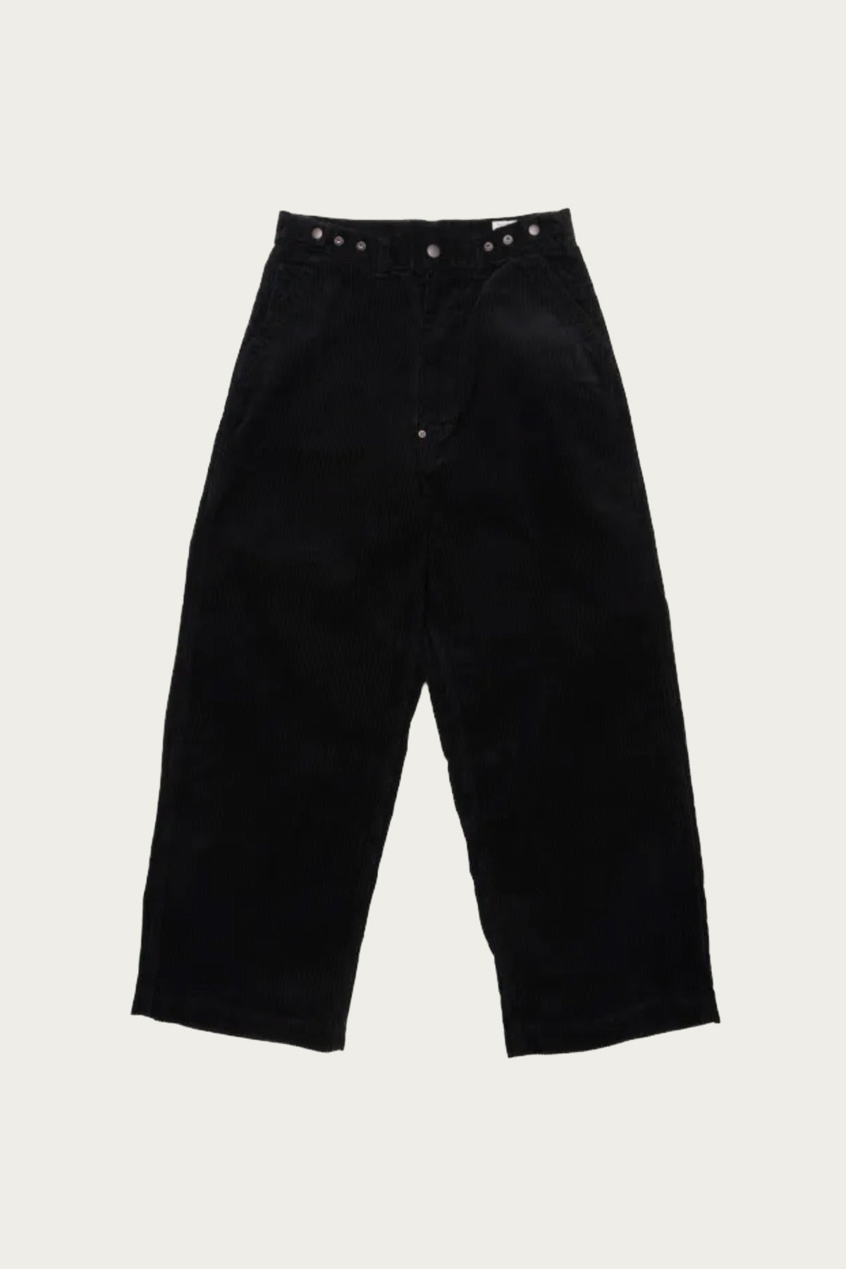 These Corduroy Bell Pants are designed with a silhouette that resembles vintage overalls. They feature a wide and thick design from the hips, and are equipped with a snap adjuster attached to the waist for an adjustable fit. Upgrade your wardrobe with these stylish and versatile pants.