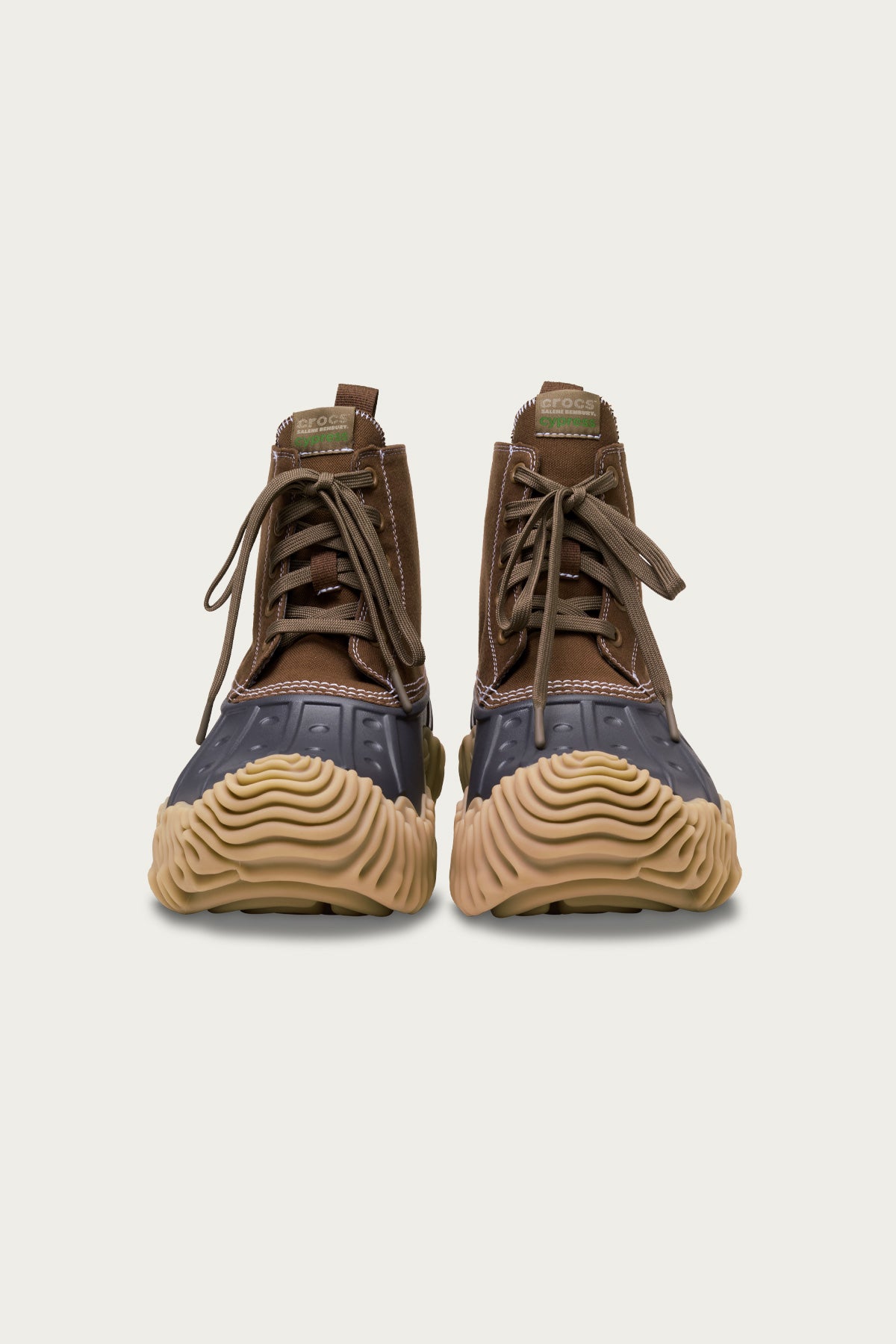 A reimagining of a generational classic, the Salehe Bembury Cypress Boot takes the duck boot silhouette and adds modern styling. This tri-color boot features a green canvas upper that meets an espresso rubber top and hazelnut sole. Salehe Bembury’s fingerprint-inspired ridged sole is the definitive detail of the Pollex collection and wraps the base of the boot. This blend of rugged and water-resistant materials will have you covered in the elements for a silhouette that’s as functional as it is comfortable.