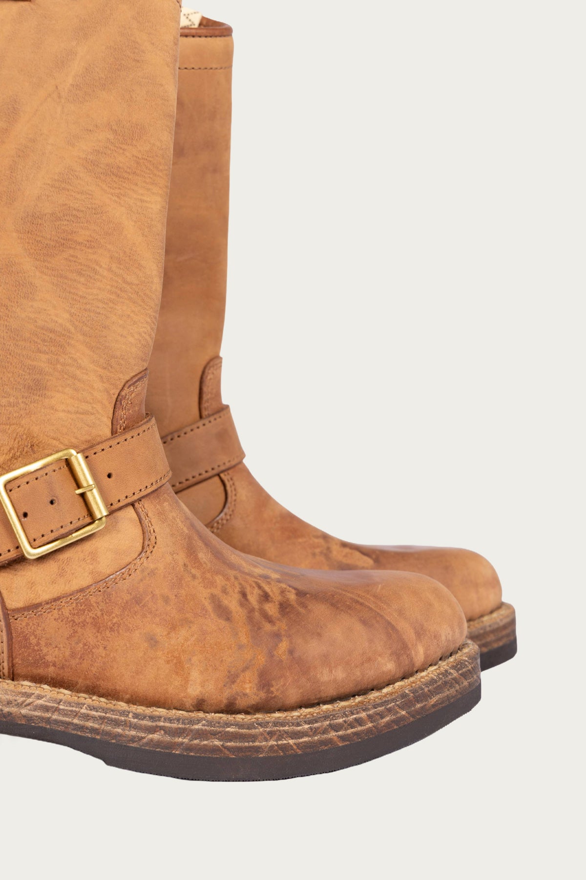 A classic engineer boot built with Visvim’s obsessive attention to leather and construction. The Two Boots Folk are made from vegetable tanned leather that softens and darkens with wear, finished with solid brass hardware and a sturdy stacked heel. Designed to age slowly and honestly, these are boots that look better the longer they’re worn.