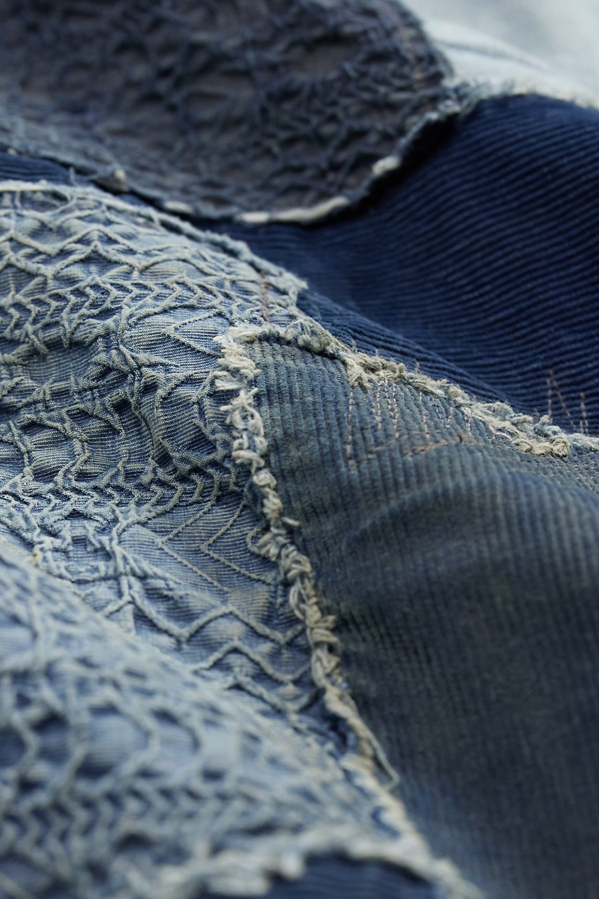 - Indigo patchwork construction