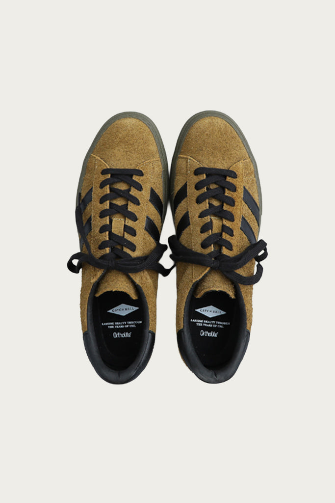 The FL-02 in camel suede takes the simplicity of a low-profile court shoe and gives it a quietly premium feel. The full suede upper deepens the tone, the leather stripes add structure, and the all-black midsole keeps things understated. It has that worn-in athletic vibe Catch Ball does so well, built for everyday runs around town where you want comfort without trying too hard. Pairs easily with wide khakis, washed black denim, cargos or sweats. Works great under a cuffed trouser for a slightly sharper take.