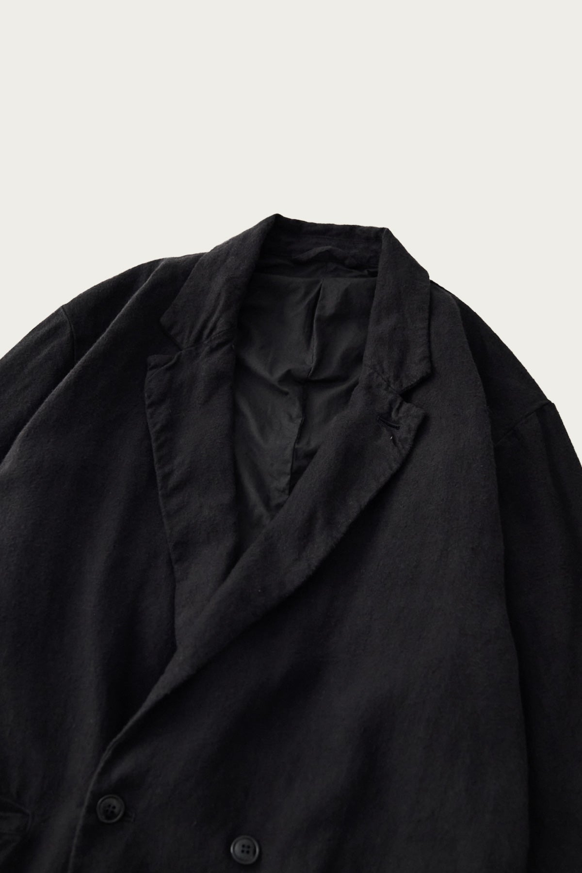 This jacket brings tailoring into a more relaxed, natural zone. Cut from a premium linen weave in an ink black shade, it wears softly from day one while still carrying structure. The double-breasted front gives it formality, the fabric and finish give it ease.