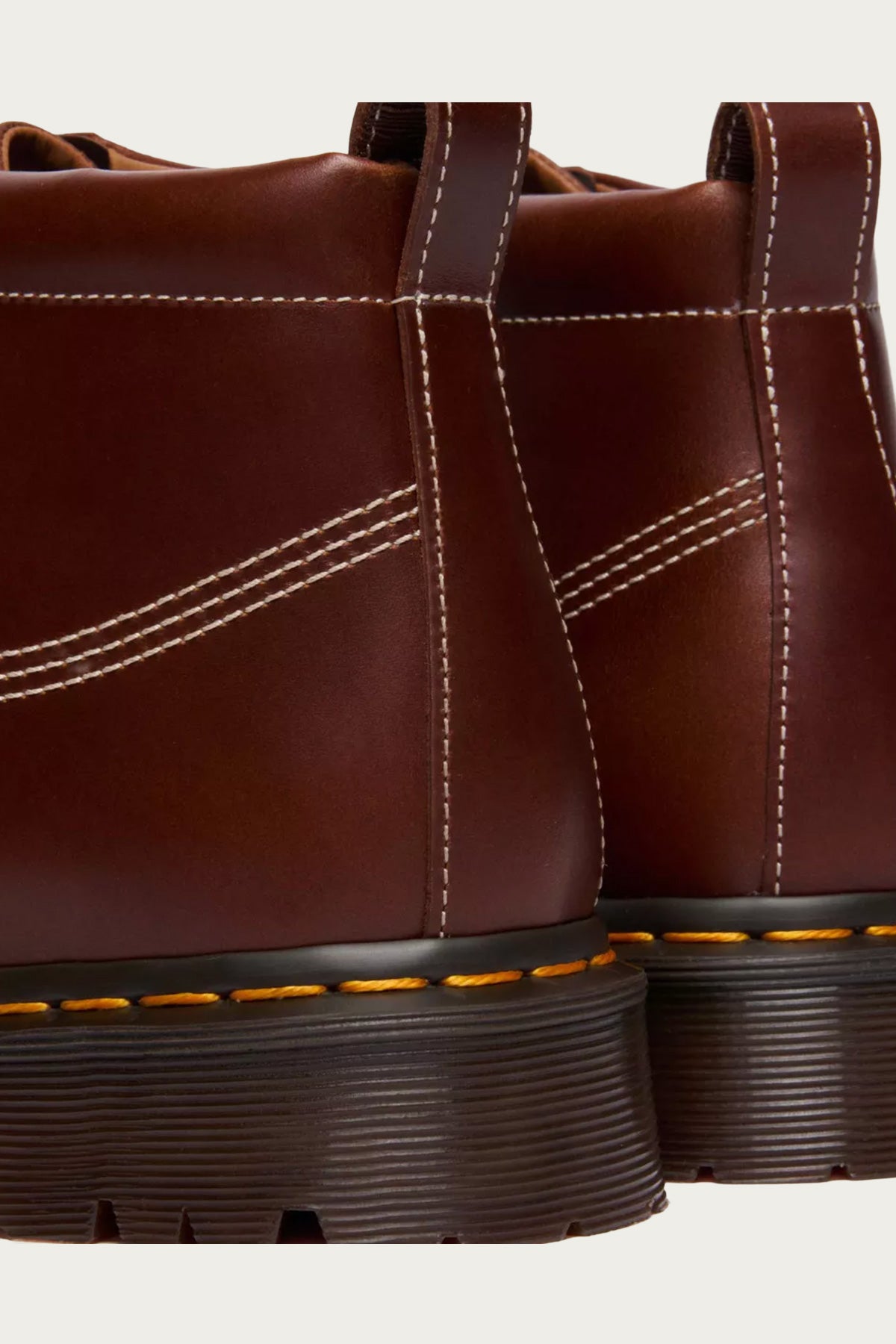 The Lowell Chukka blends two Dr. Martens icons into one easy everyday boot. Using the refined shape of the Lowell shoe and the casual height of a Chukka, it hits that perfect balance between workwear edge and daily comfort. Crafted from supple Orleans leather, it has a natural grain and soft feel that breaks in beautifully over time. Original Lowell details, like the padded collar, silver eyelets, and contour stitching, give it heritage appeal, while the signature yellow welt stitch and AirWair™ rubber sole keep it unmistakably DM’s. Built to last and designed to move with you.