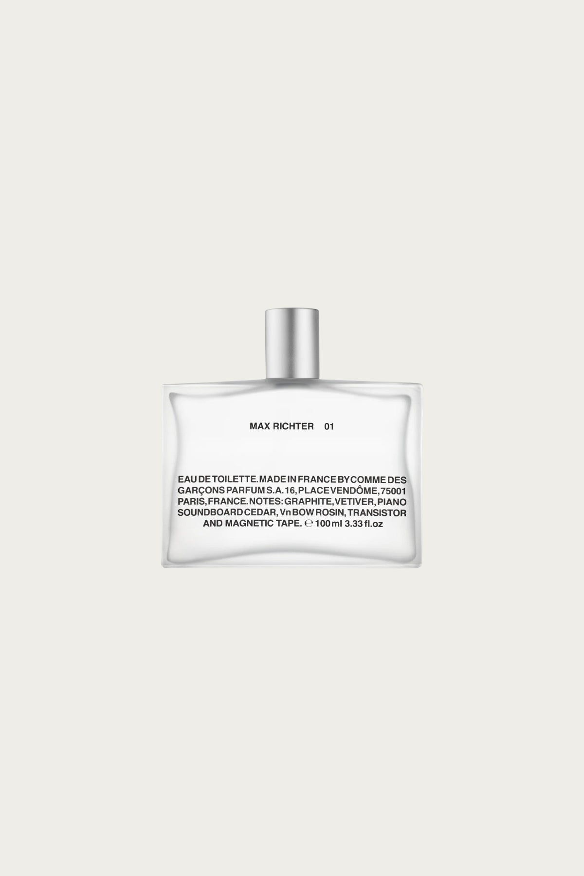 The collaboration emerged from creative dialogues between Richter, his creative partner Yulia Mahr, and Comme des Garçons Parfums. A quiet narrative composed in Richter’s unique voice. The fragrance centers on objects tied to Richter’s life and work: Graphite, Vetiver, Piano Soundboard Cedar, Violin Bow Rosin, Transistor, and Magnetic Tape.