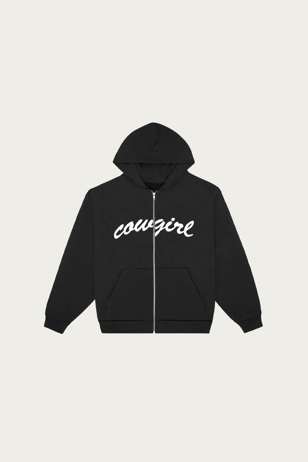 An easy everyday layer with a little Western spirit. The Script Zip Hoodie is made from soft, midweight cotton fleece with a relaxed fit that feels broken in from day one. The front features their signature Cowgirl script logo printed in white, bringing a classic finish to a casual staple.