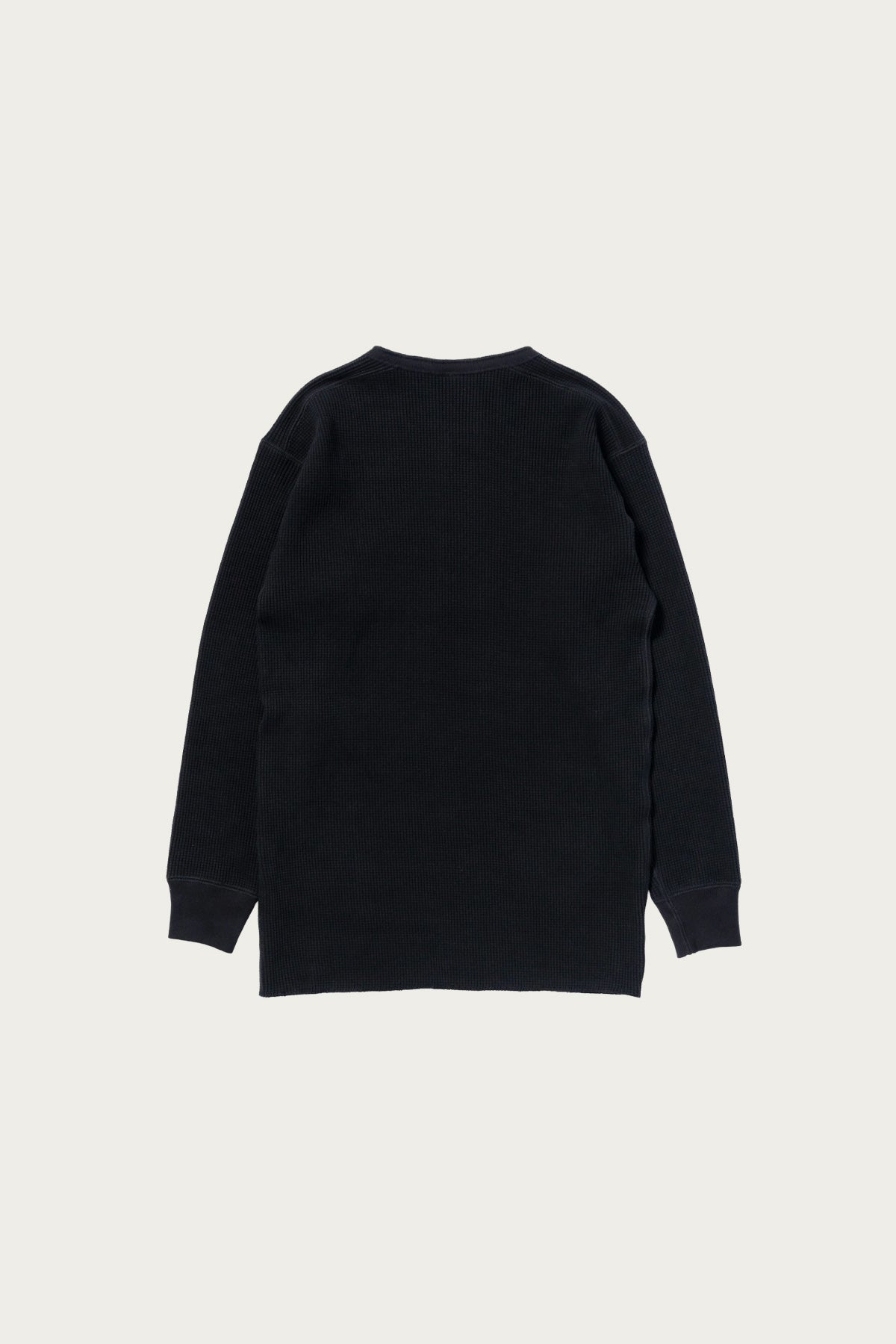 The Waffle Thermal Henley is a vintage-inspired essential reworked for today’s layering needs. Knit from cotton in a waffle-thermal pattern, it lives up to its utility roots with texture that traps warmth without bulk. The contrast two-tone placket and overlocked stitching give it a crafted sense of detail, while the urea “cat’s eye” buttons nod to midcentury workwear styling. Classified as a “BALLPARK” piece, it’s built with heritage spirit, echoing how henleys evolved from rowing shirts to factory wear, while keeping the modern sensibility of The Real McCoy’s build standards.