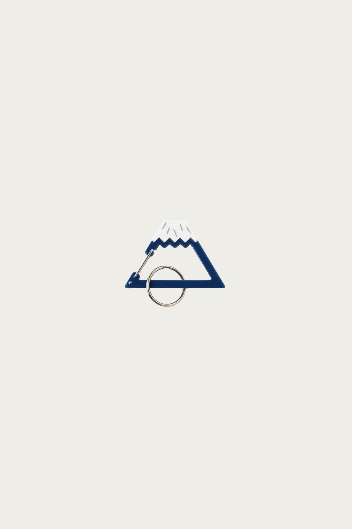 Graphic acrylic keychain shaped like Mt. Fuji, in bold blue.
