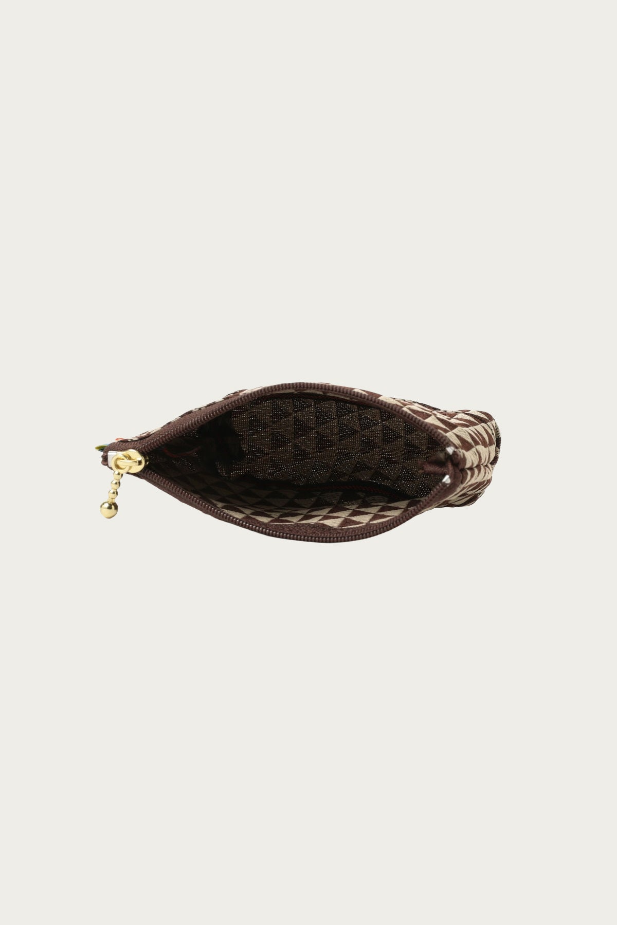 A compact, easy to use pouch that highlights Takata’s expertise in tatami weaving. The repeating scale motif brings rhythm to the surface while the neutral brown palette keeps the piece versatile. The texture feels sturdy yet flexible, making it a functional way to carry daily essentials with a note of Japanese tradition.