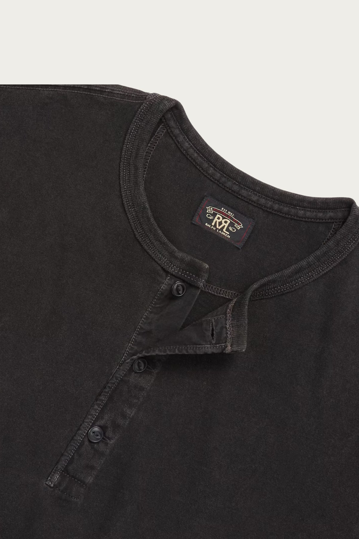 This one leans on the kind of understated detail that RRL always nails. The cotton jersey is pigment-dyed in sulfur black and stonewashed to create that almost-charcoal tone, softened at the edges like it’s been sun-bleached over time. Finished with a 3-button placket and rib-knit cuffs.