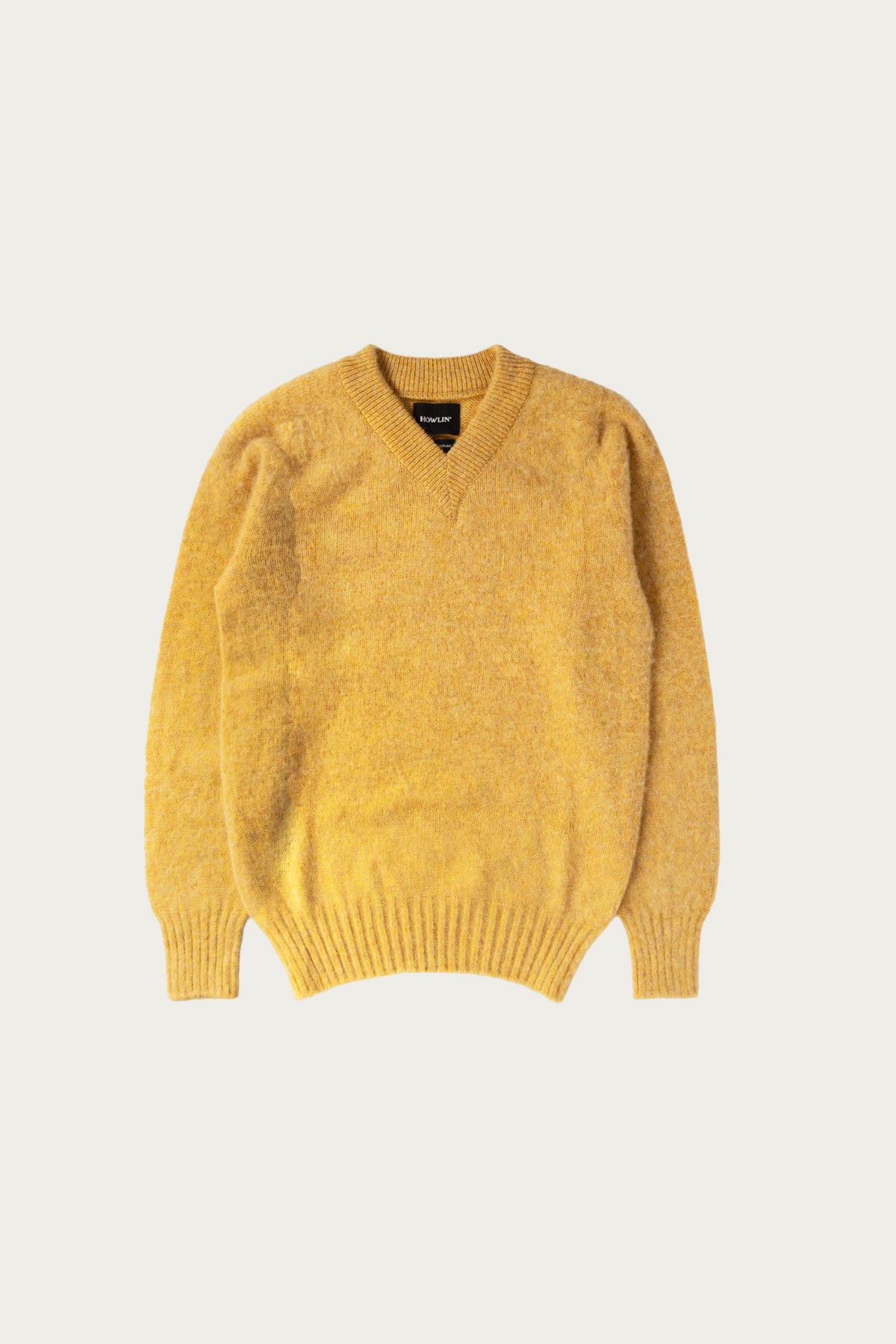 A timeless knit that carries warmth and heritage in every stitch, the Future Memories sweater is made from pure Shetland wool. The V-neck silhouette feels quietly polished, with fine ribbing at the collar, cuffs, and hem giving structure and comfort. A soft brushing with natural teasels finishes the surface with a delicate fuzz that begs to be worn. Balanced in fit and rich in character, it’s the kind of sweater you’ll layer over a shirt or wear solo long after the season passes.