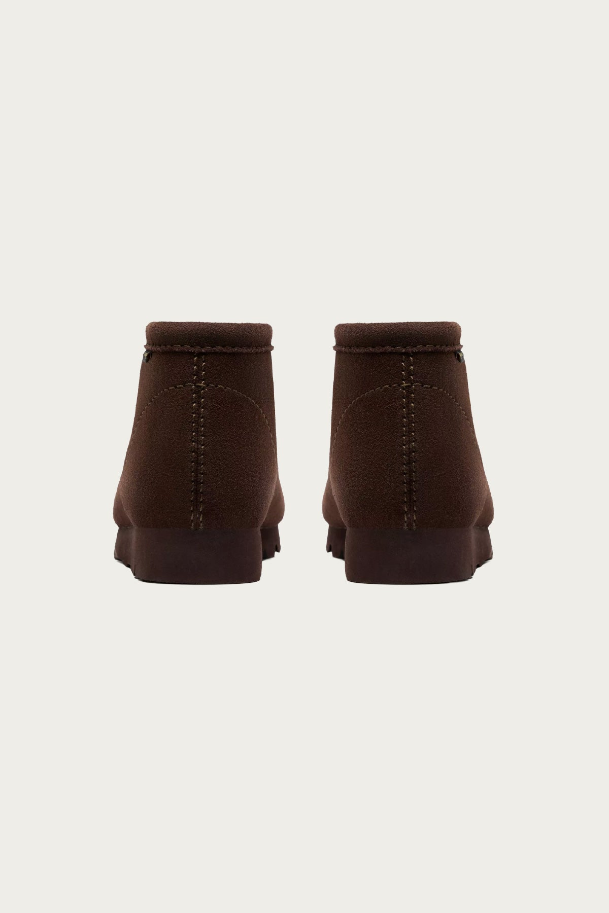 Enhanced with GORE-TEX® for protection against wet weather, our unmistakable Wallabee Boot Gore-Tex arrives in dark brown suede for ultra-versatile wear. Butter-soft suede lends a premium look and feel, while its tough Vibram® sole channels an urban-hiking aesthetic that’s fit for all seasons. It’s complete with three signature logo fobs and a spare set of laces too, for a details-focused finish that stays true to Originals DNA.