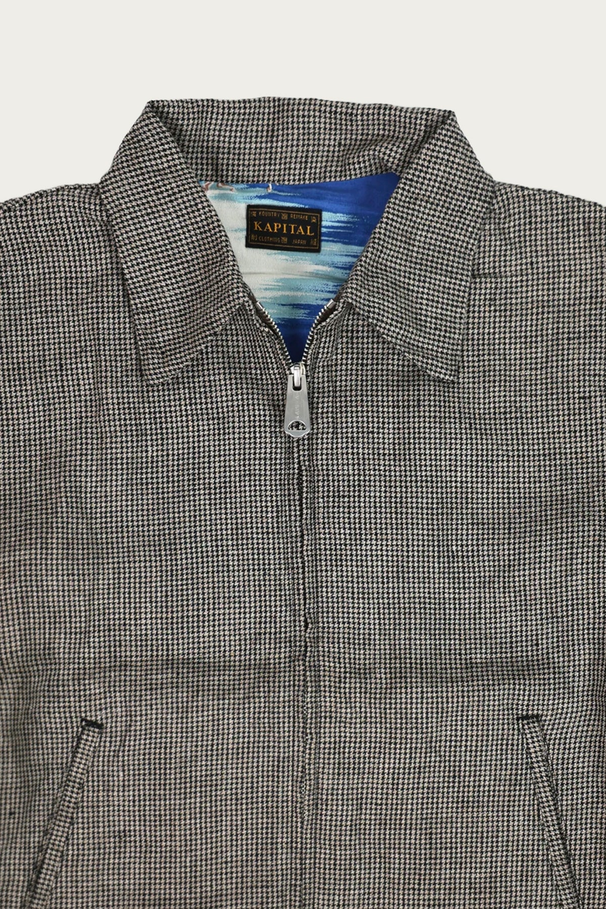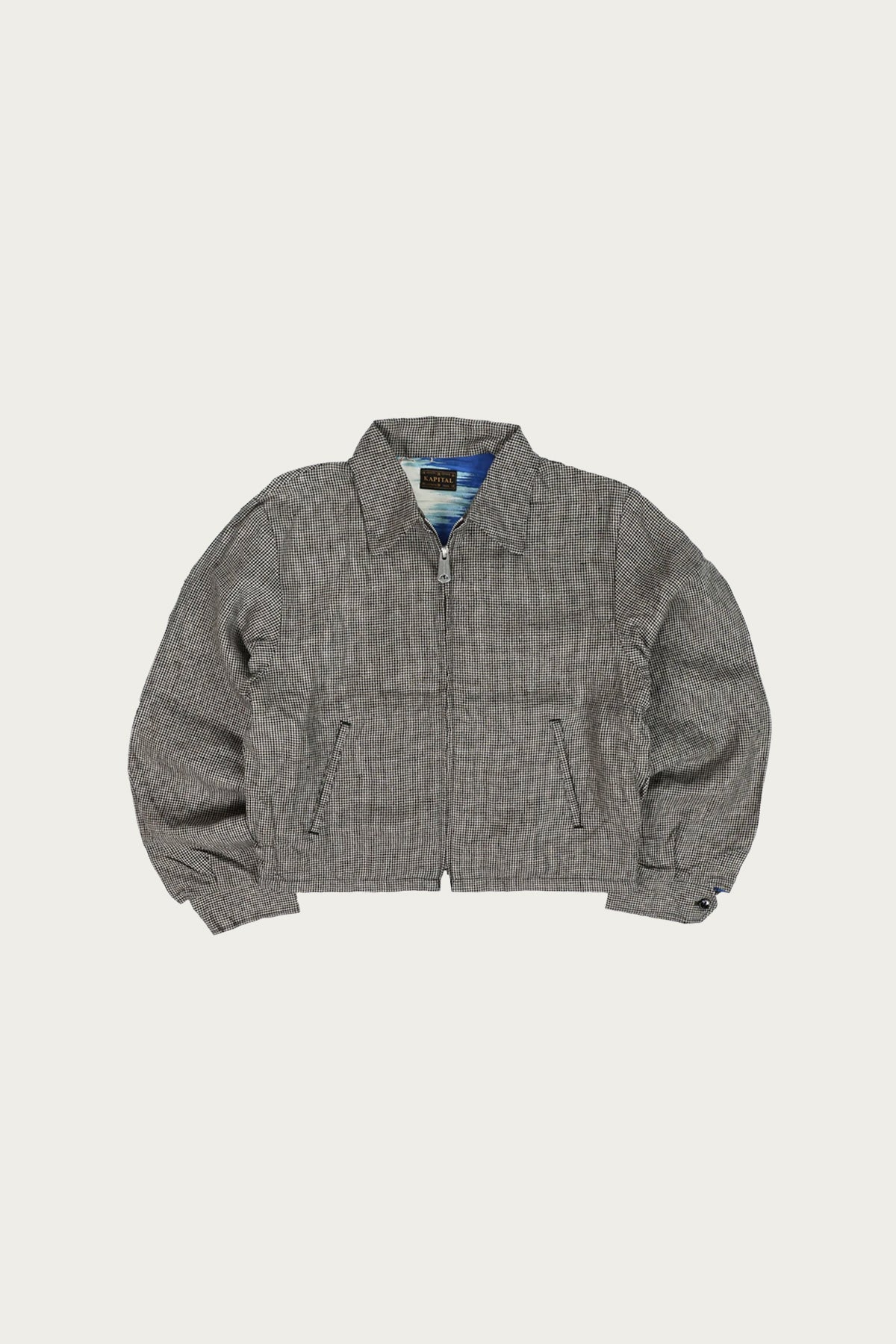 Crafted in Japan, the Linen Houndstooth Drizzler JKT in Gray is a sleek and sophisticated choice. Made with high-quality linen, this jacket features a timelessly stylish houndstooth pattern and a drizzler style for a touch of modernity. Elevate your wardrobe with this expertly crafted and versatile piece.