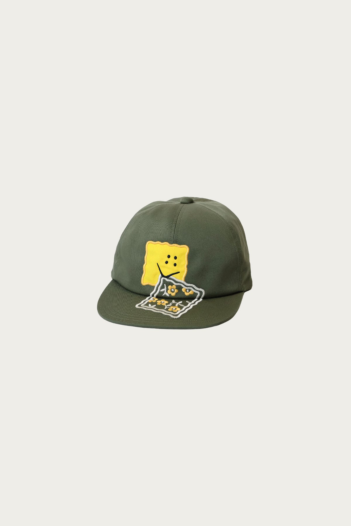 Kapital’s soft chino cap is embroidered with their little “happy square” character eating a square of blooming flowers. It feels homemade in the best way. The washed khaki fabric wears in beautifully and invites everyday use.