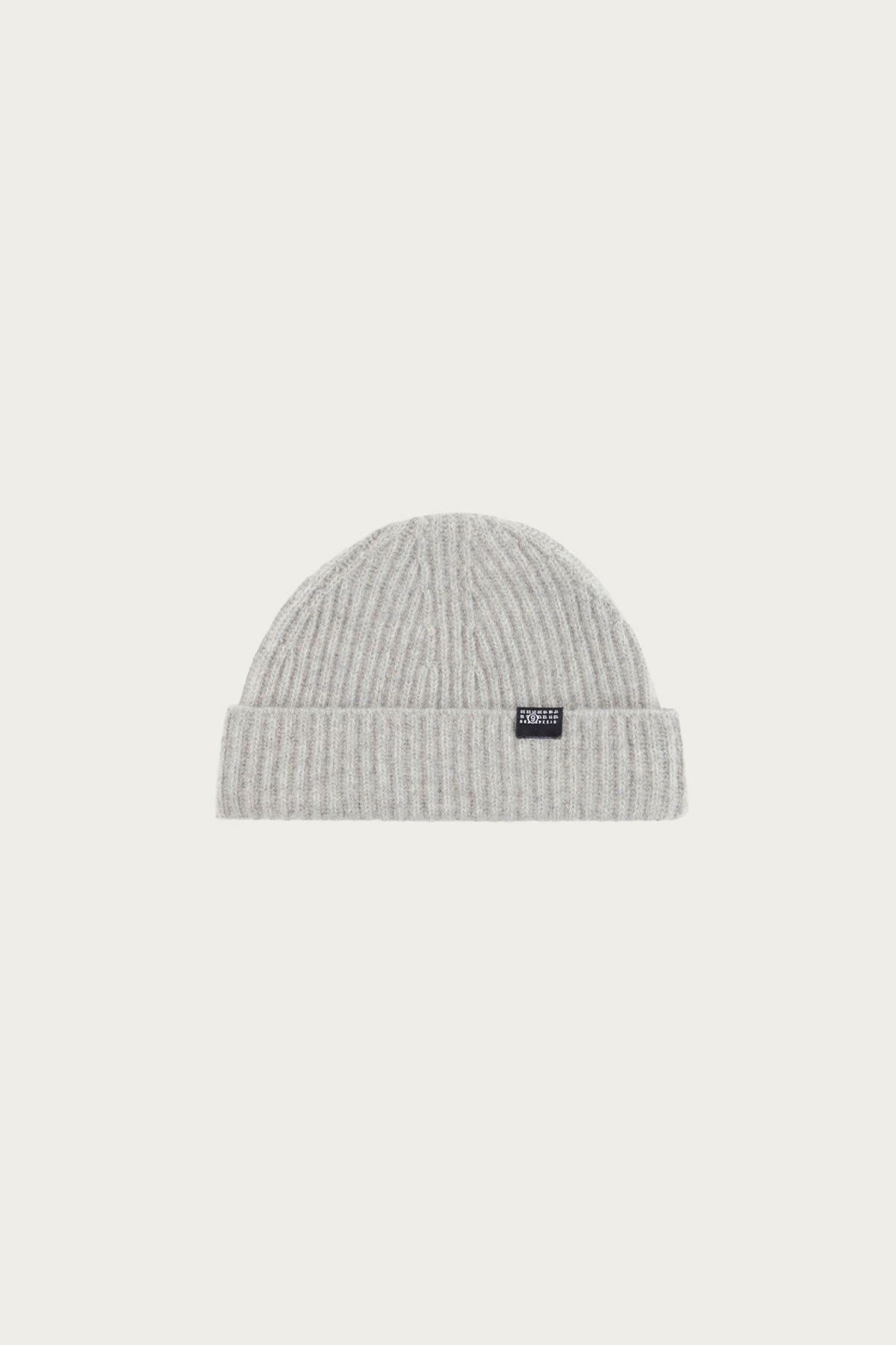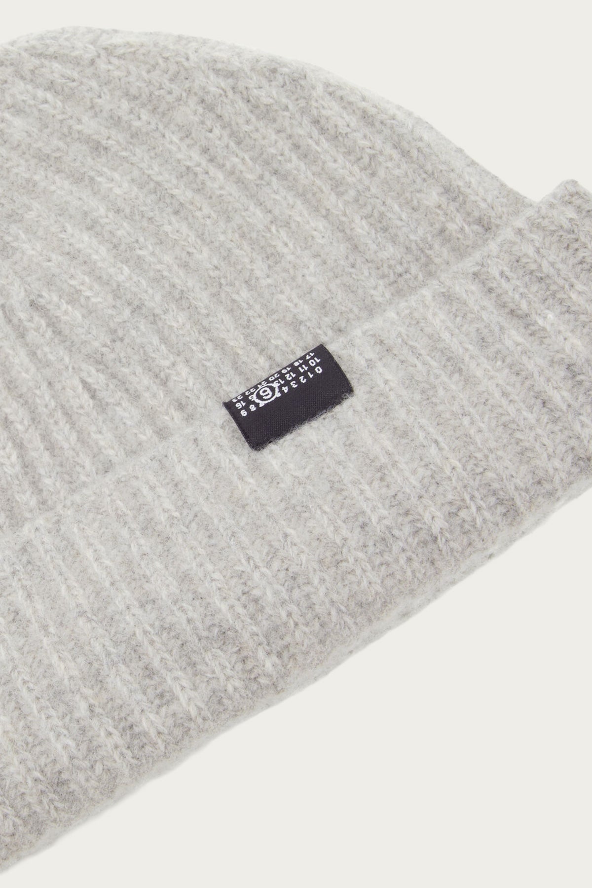 Wool ribbed beanie recalling the sturdy fisherman knit, treated with a soft wash for a cashmere-like feel. Designed for versatile wear, it is completed with MM6’s numeric label at the front.