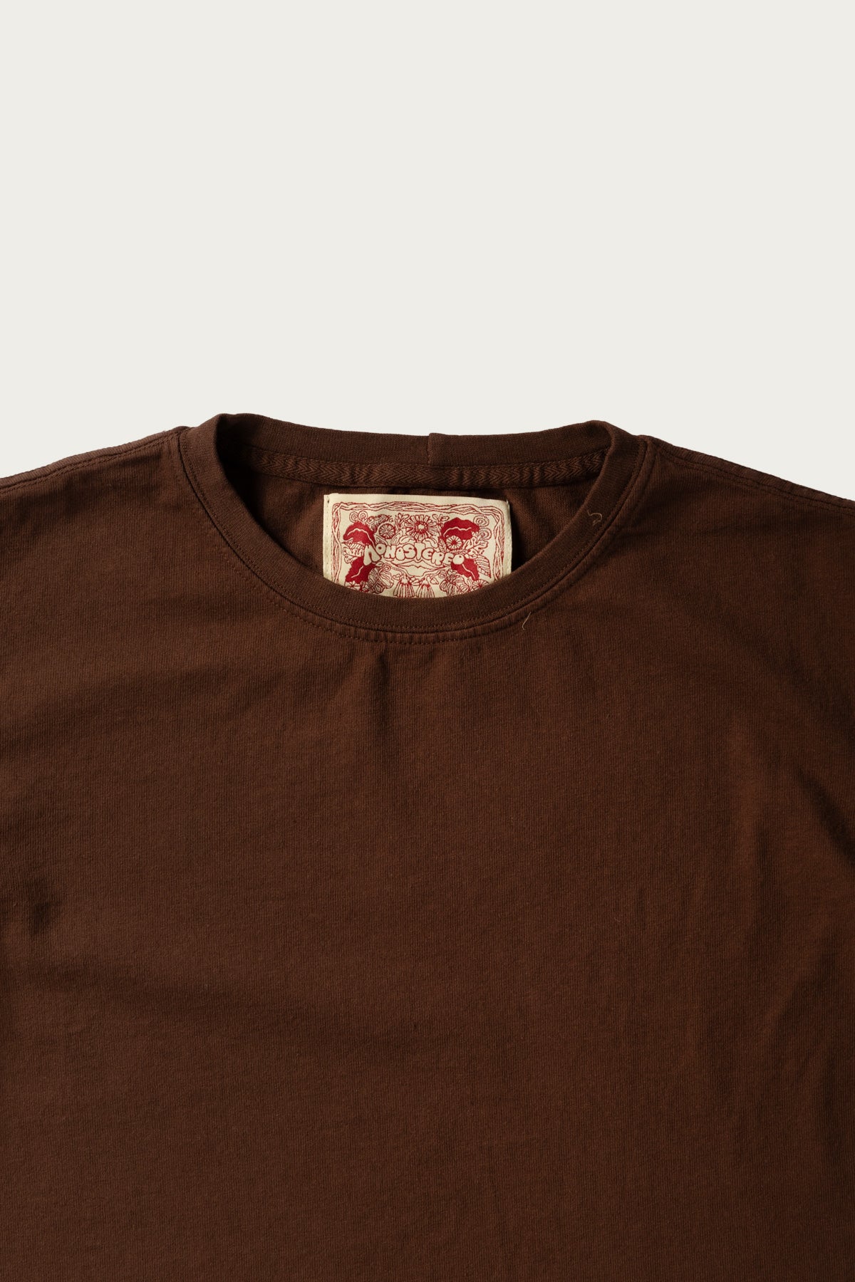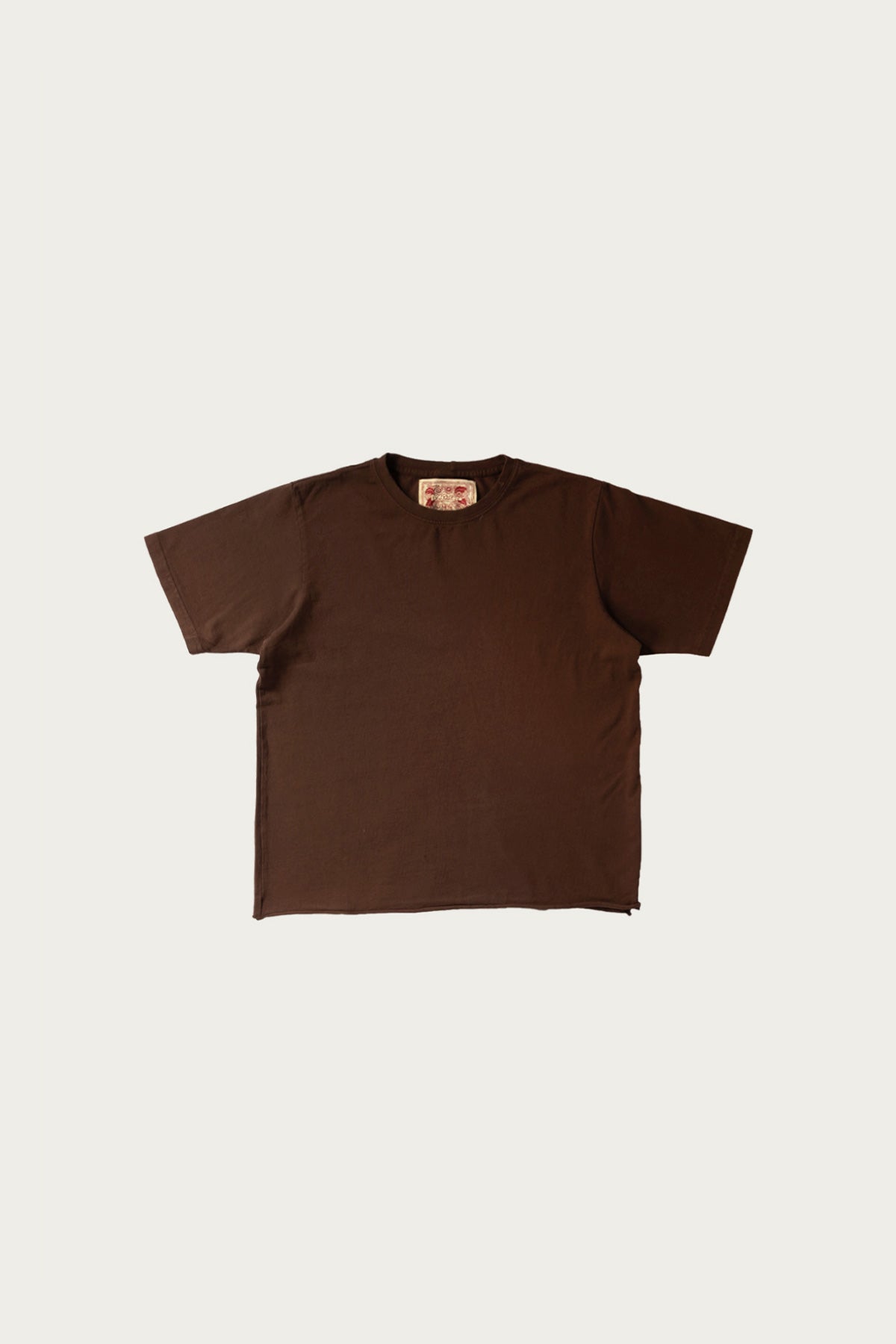 Quiet, clean, and easy to wear. The On The Farm Raw Hem Tee in Cocoa is a soft essential-- cut from lightweight cotton jersey and finished with a raw hem for that lived-in, studio feel. The undyed fabric brings out the cotton’s natural tone and texture, making it feel honest and grounding.