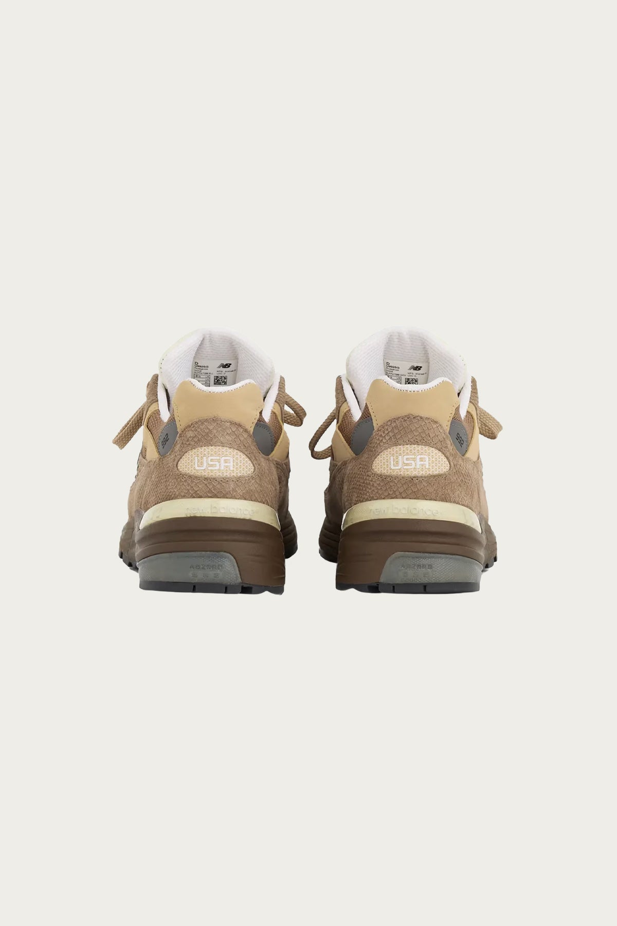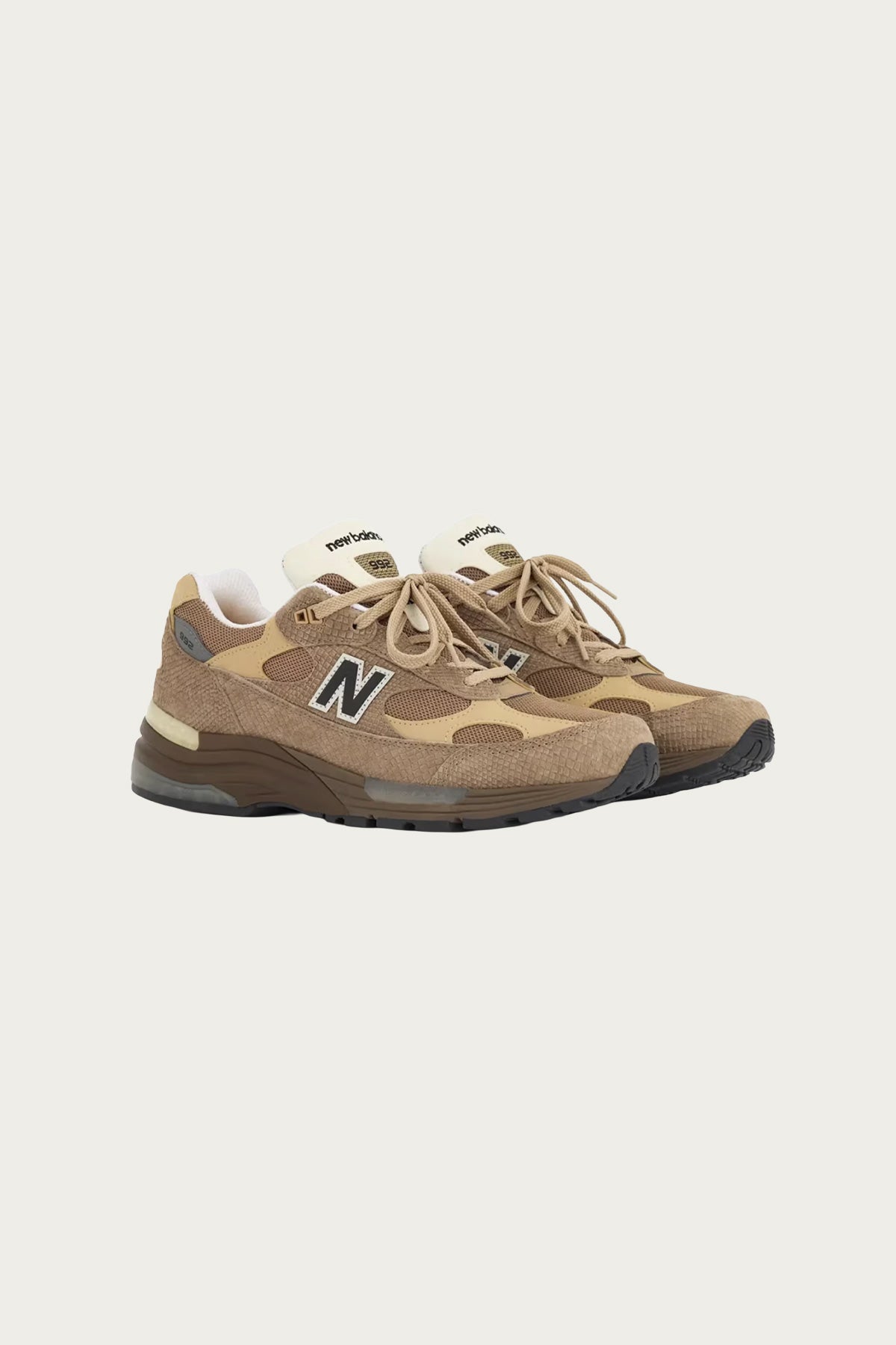 A warm, earth-toned take on one of New Balance’s most iconic silhouettes. The 992 pairs its familiar retro-runner shape with a mix of textured suedes and breathable mesh in driftwood and mushroom tones. It is comfortable right out of the box thanks to ABZORB cushioning in the midsole and that signature 992 stability. The palette leans into natural, easy-to-wear shades that work with everything from wide fatigues to washed denim.