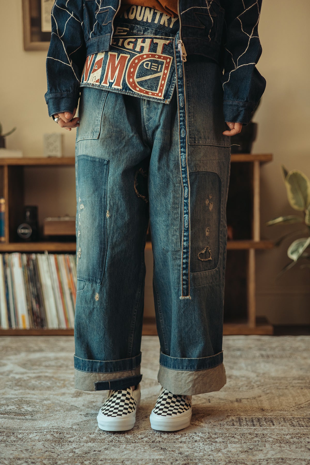 The exaggerated baggy fit provides a relaxed silhouette that pairs perfectly with cropped jackets and oversized tees. Signature details like the slanted patch pockets and drawstring waist root the piece in its utilitarian past, while the RUSHFIELD finish offers a future-forward sense of individuality.