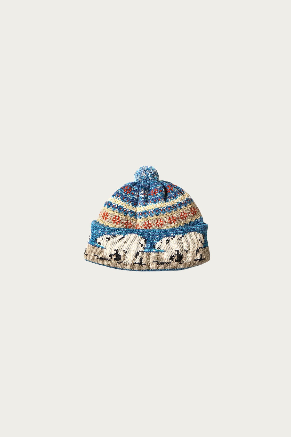 Kapital leans into their playful knit language with a cold-weather cap that feels equal parts nostalgic and adventurous. Knit in a cozy mid-gauge wool, the hat features a full band of wandering polar bears and a colorful Fair Isle crown topped with a soft pom. It is warm, lightweight, and full of the character that makes Kapital knits so fun to wear.