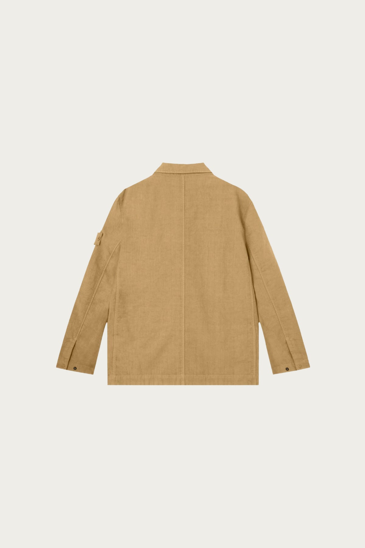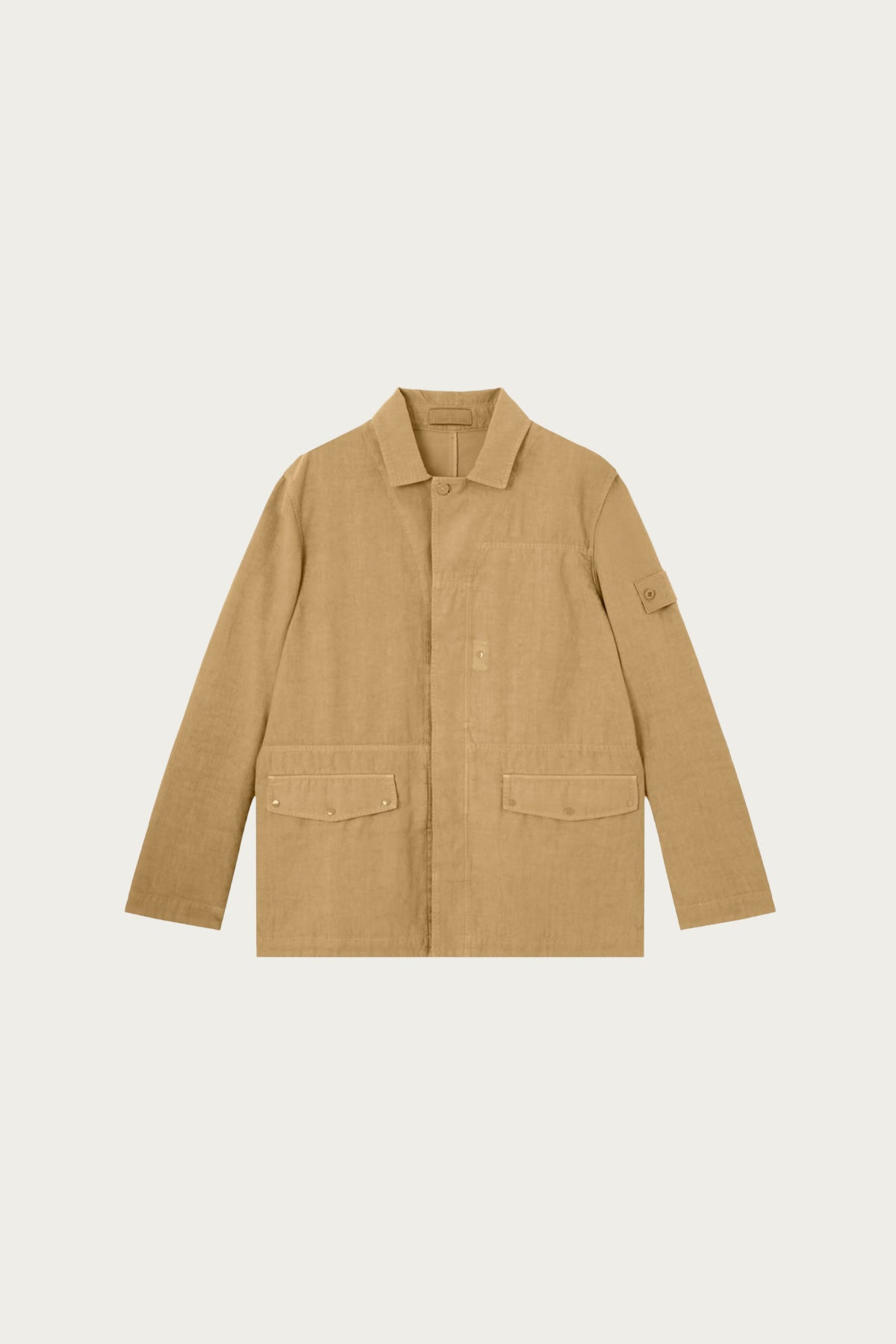 A lightweight coach jacket made from bonded linen fabric, giving the garment structure while maintaining breathability. The design features a button front closure, classic collar, and clean minimal pocket detailing. The removable Stone Island badge completes the look.