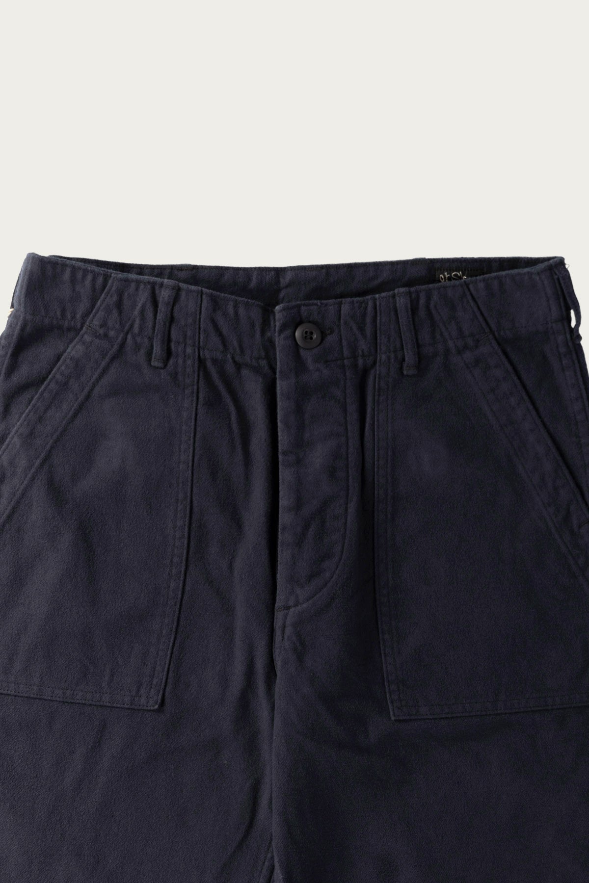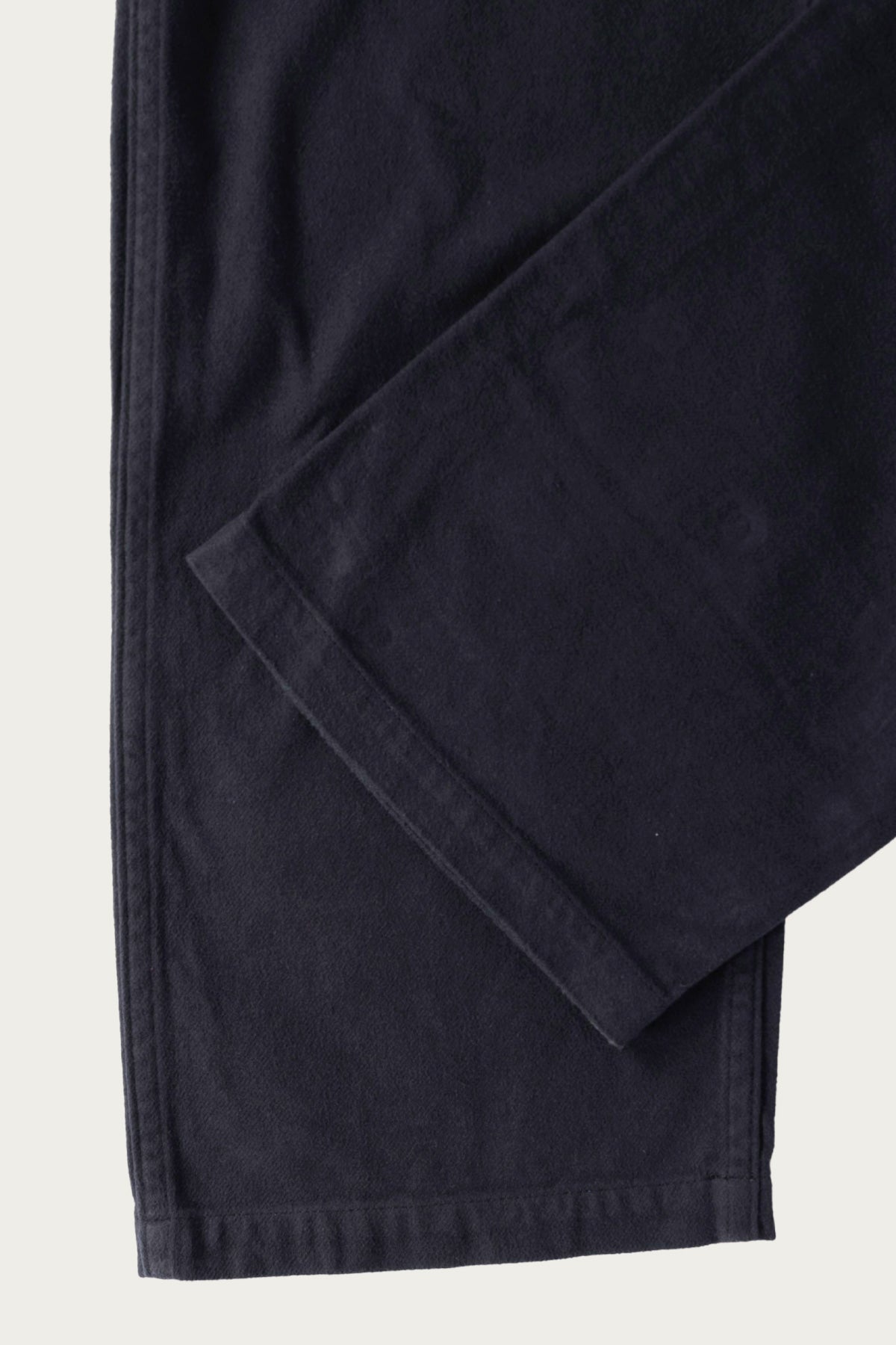 The Brushed Flannel U.S. Army Fatigue Pants in dark navy re-work a military staple into something built for relaxed wear and seasonal texture. Made in Japan from thick cotton flannel that’s been brushed for a soft hand, they keep the silhouette of the classic fatigues (with roomy thighs, adjustable waist tabs, and front/back patch pockets) and wrap it in warmth and ease. The dark navy tone gives it a deep base that layers well, and the fabric invites wear and time without needing to shout. It’s trousers you’ll reach for from autumn into winter and beyond.