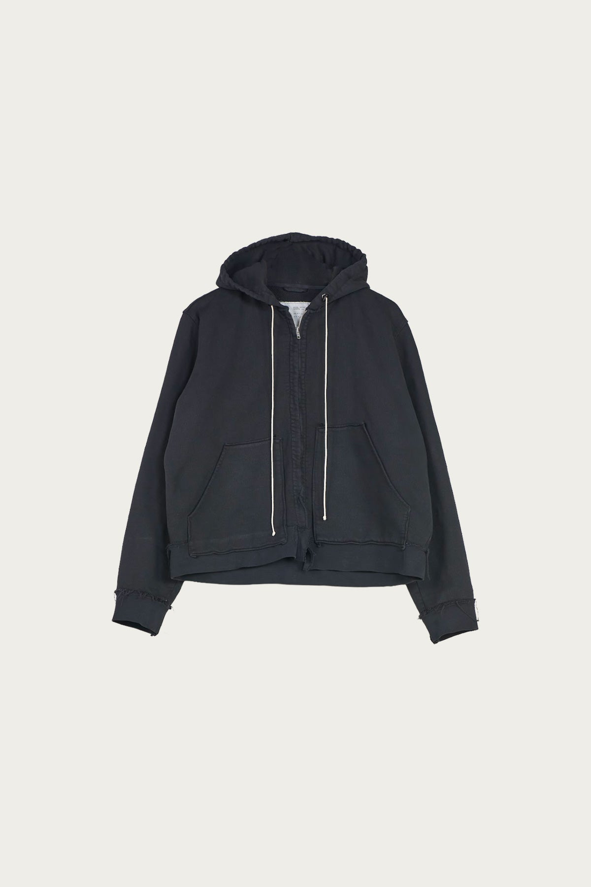 The Fitted Zip Hoodie from Camiel Fortgens takes a classic form and twists it just enough to feel handmade and human. Cut from a soft, midweight jersey cotton, it fits closer to the body than the brand’s usual oversized shapes, giving it an easy but intentional feel. The raw finishes at the zipper, pockets, and sleeve cuffs speak to Fortgens’ approach to imperfection. Every seam is slightly off, every stitch deliberate. It’s a hoodie that feels both broken-in and built to last.