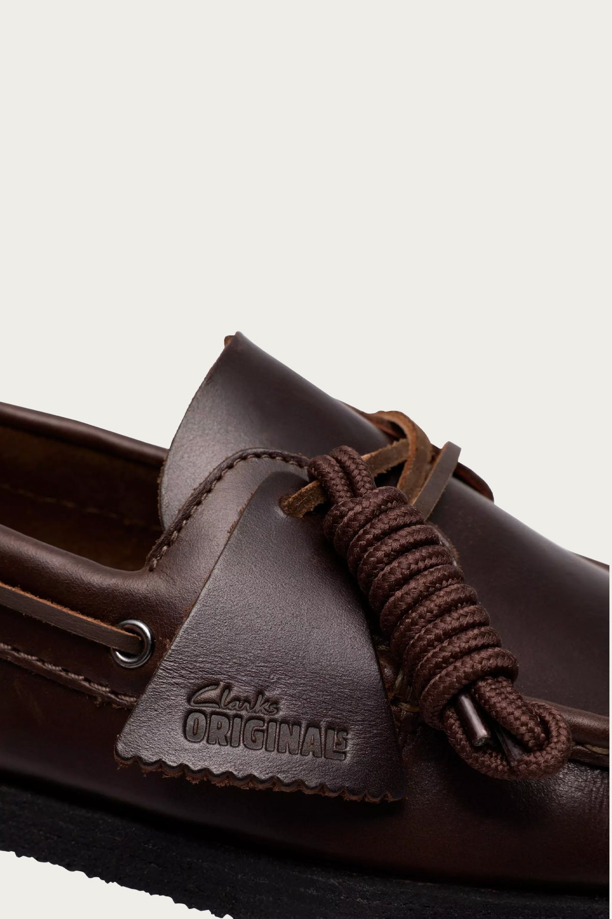 A natural follow-up to our popular Godney Lace and Godney Mocc silhouettes comes the latest Originals twist on the classic deck shoe - the Godney Boat. Inspired by our boat shoes from the archive, but with a recognizable hand stitched Wallabee-style apron seam adorning the front vamp, while a small crafted butt seam surrounds the back heel unit.