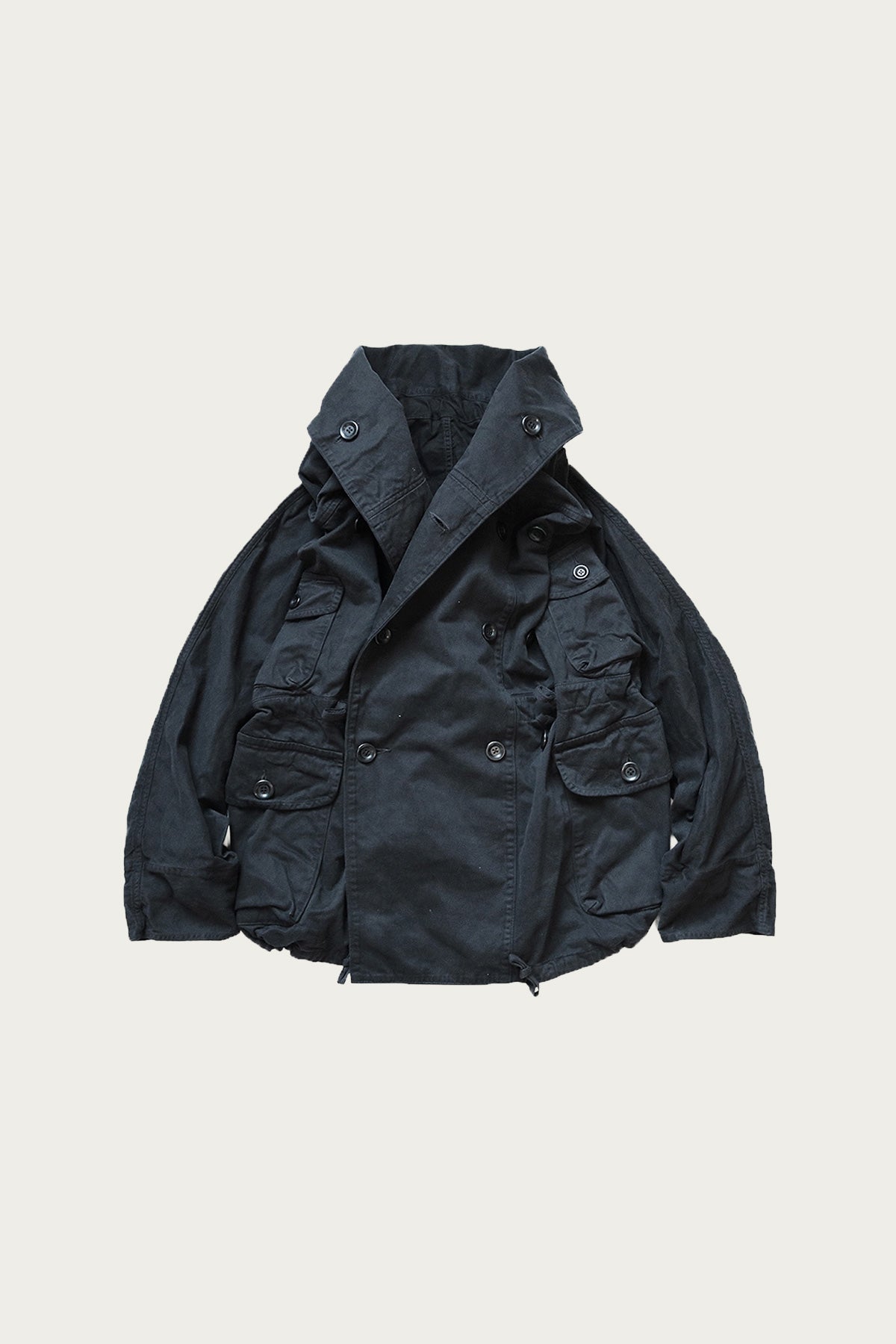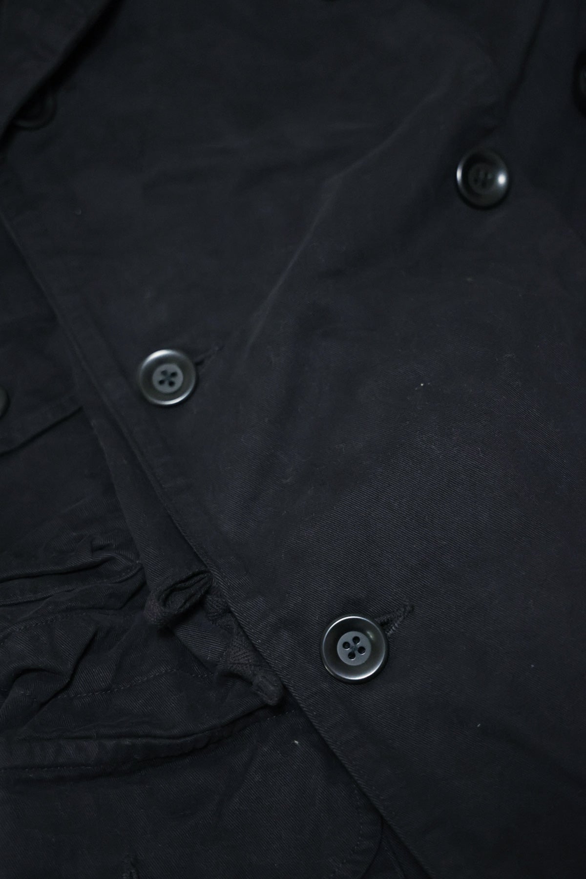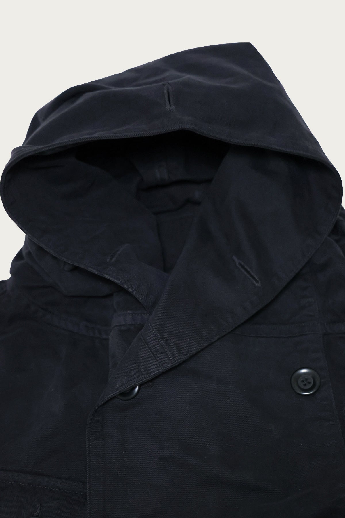 The Katsuragi Ring Coat is a mainstay in the Kapital collection and has become a fan favorite. Landing somewhere between a double breasted jacket and deck jacket, this oversized hooded jacket can be worn several different ways making it a unique piece that everyone will interpret differently. Black Colorway.