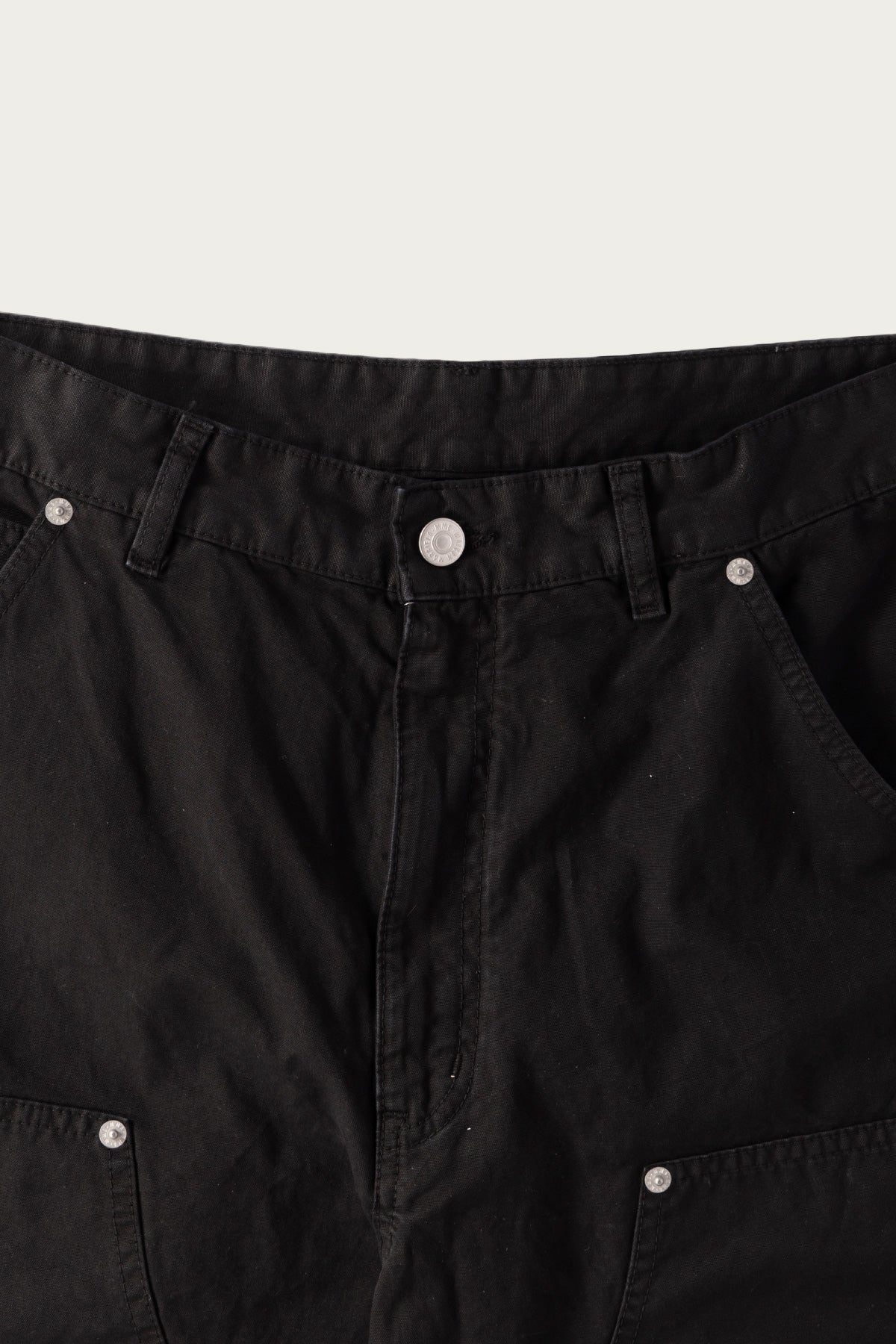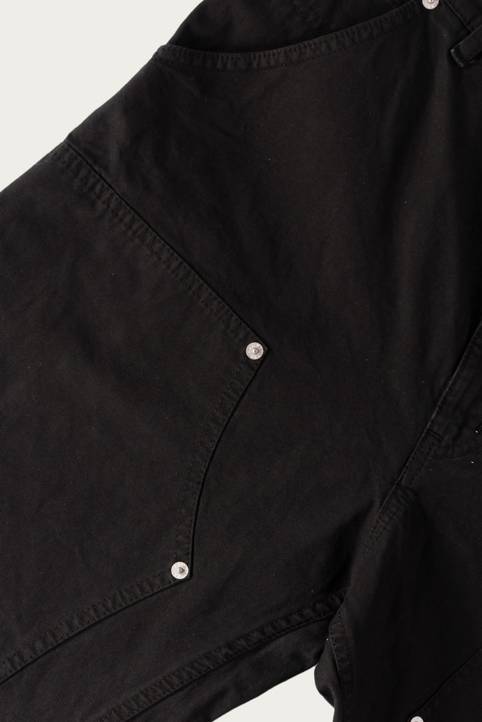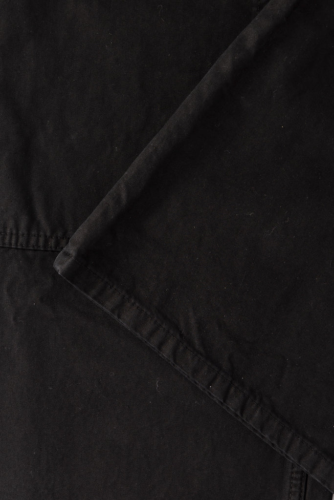 A versatile black pant that plays well with relaxed tailoring, boxy outerwear, or a tucked tee. Tailored and tough in equal meaure.