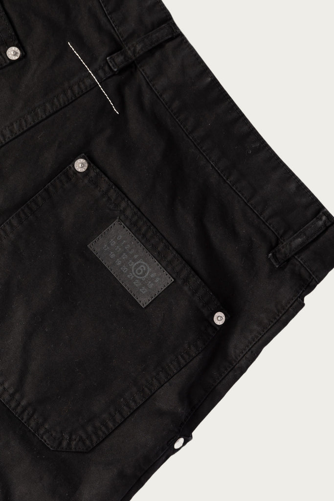 Horizontal seams at the knees nod to workwear heritage, while wide belt loops and four functional pockets keep things grounded in daily utility. Finished with MM6’s iconic white stitch detail at the rear for quiet distinction.
