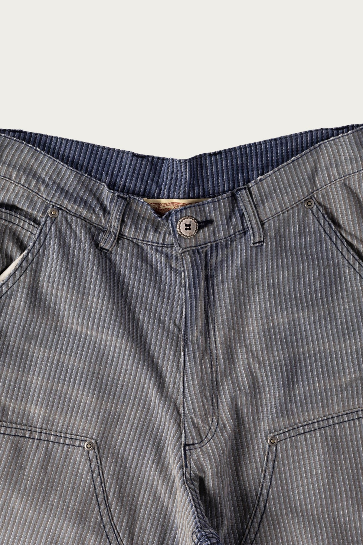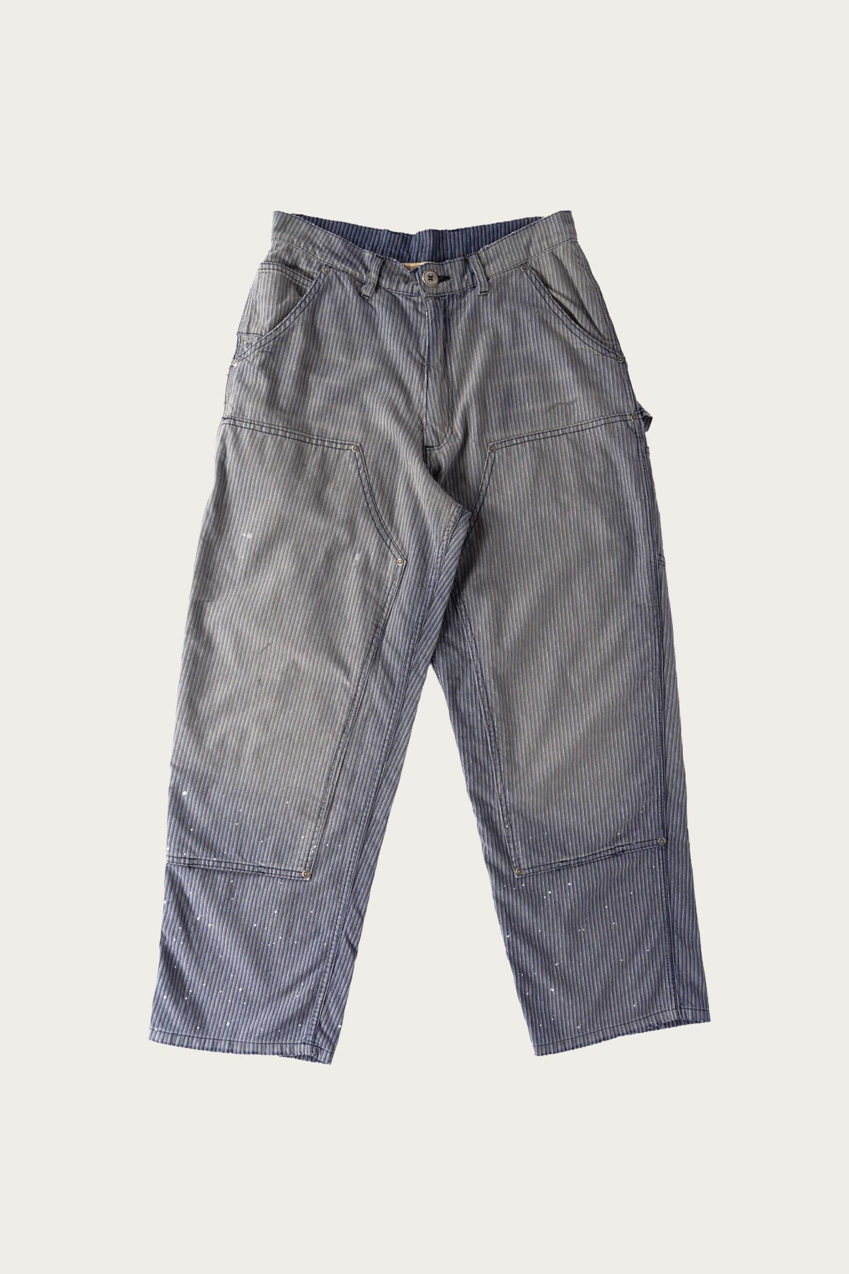 Monostereo reworks a traditional double knee work pant with signature softness and their refined eye for proportion. The blue stripes feel sun washed and the fabric breaks in comfortably as you wear it. The reinforced front panels nod to vintage railroad trousers and the straight, easy leg makes them a dependable everyday pant.