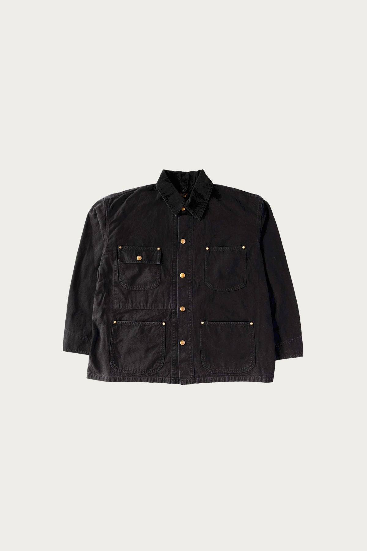 Expertly crafted in Japan, the Black Relax Fit Oxford Coverall combines military toughness with a comfortable, loose fit. Made from pre-washed cotton for a soft, lived-in texture, this coverall features four front pockets and brass button closures. A corduroy lined collar and cuffs add warmth and sophistication. Practical meets fashion-forward. Black colorway.