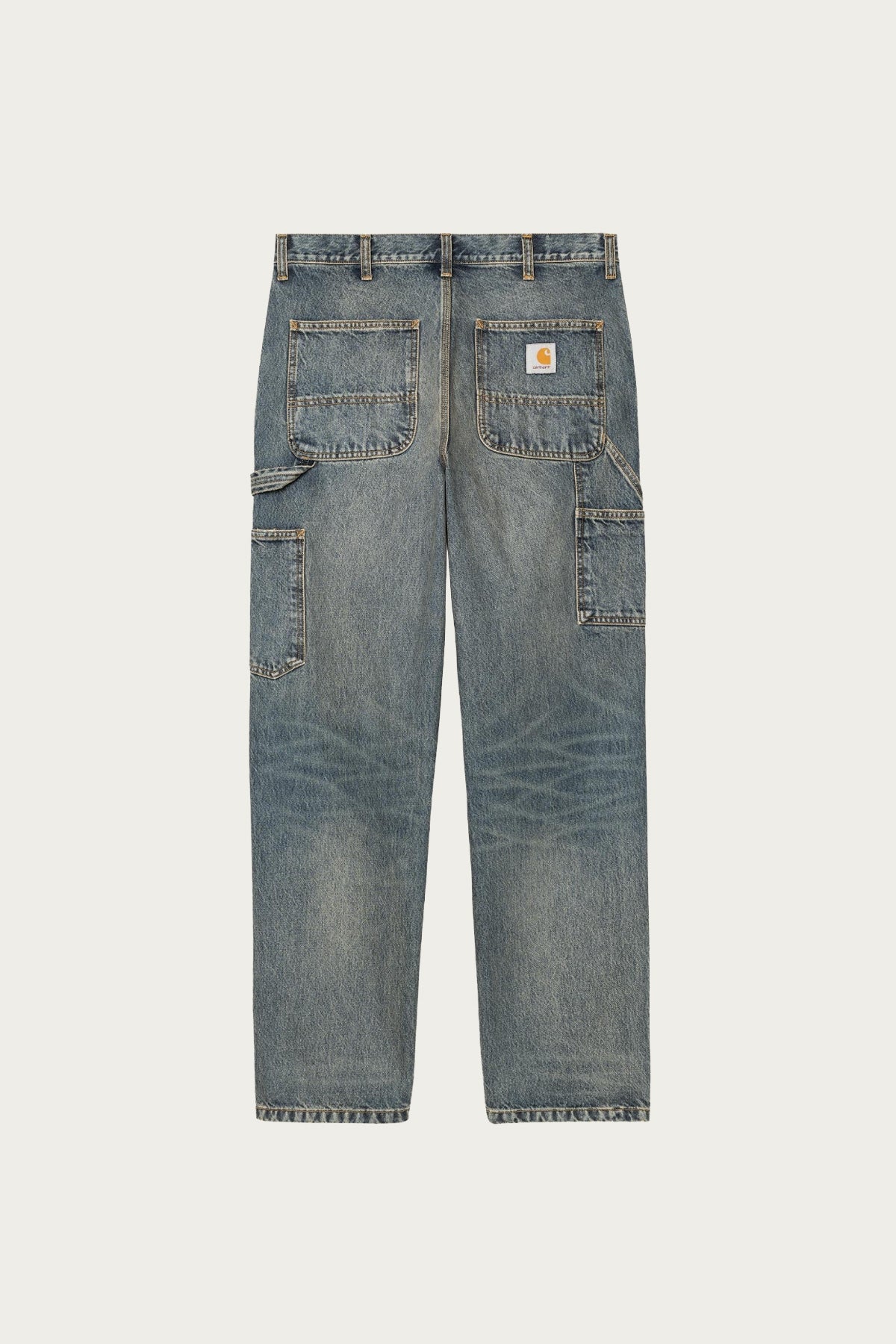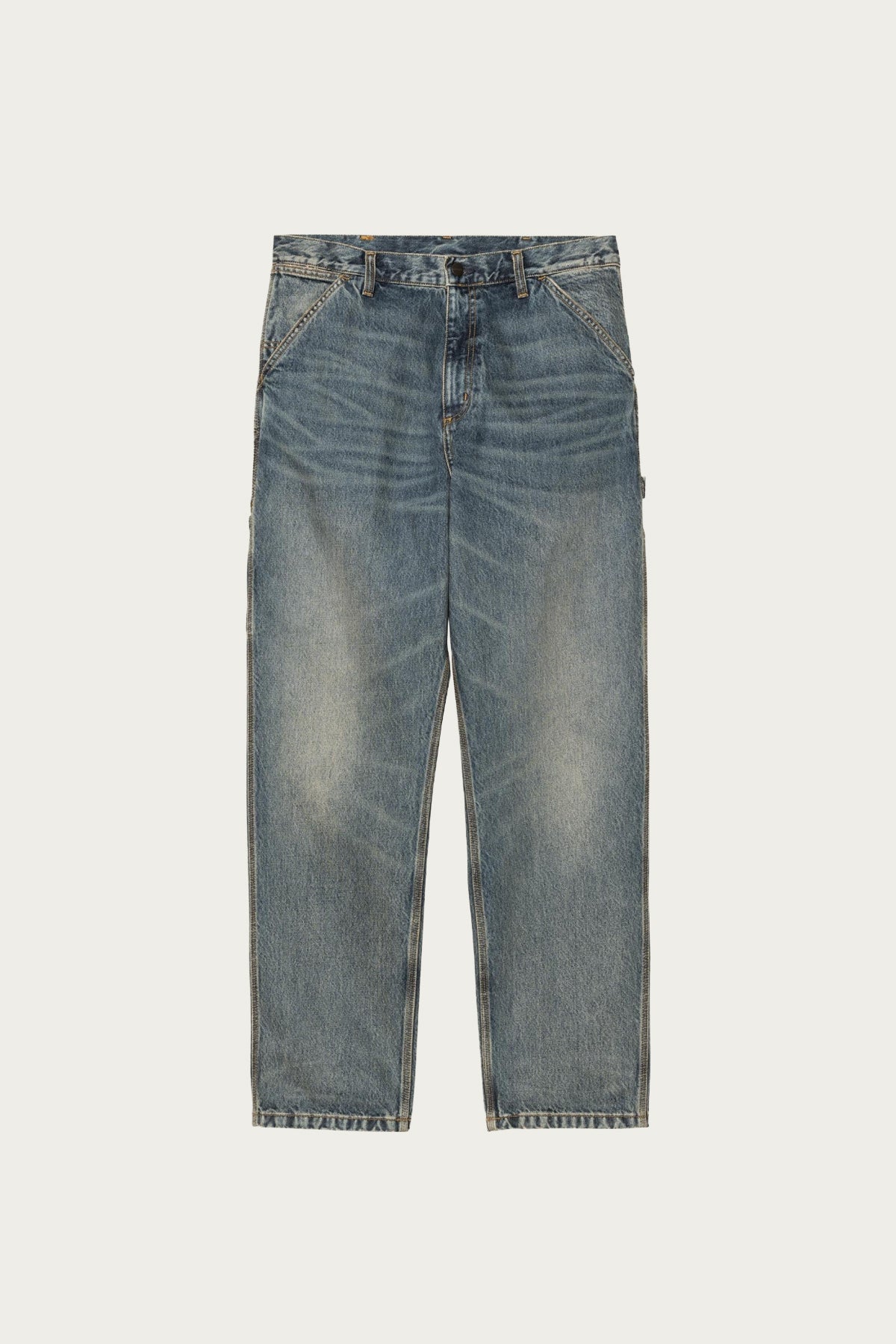 The Single Knee Pant draws inspiration from classic work pant silhouettes and is constructed from Smith denim, which is a robust 13.5 oz cotton twill fabric. It is cut in a relaxed straight fit with a regular waist. The style comes in several iterations, including those which have been rinsed for softness without compromising on durability, as well as versions which have been stone-bleached for a lighter finish and worn-in appearance. Triple-stitched details make the pant more robust, while tool pockets and a hammer loop offer further nods to the item's utilitarian influences.